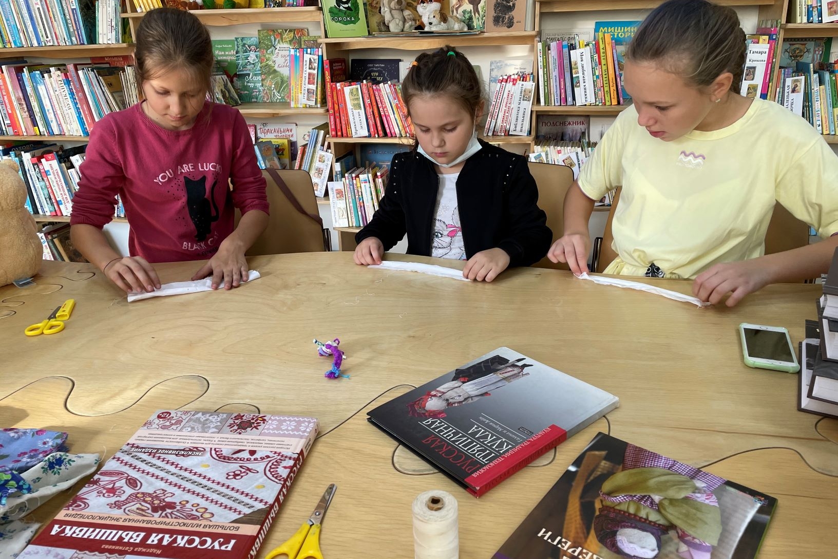 В детской библиотеке №7 продолжаются занятия по русской тряпичной кукле, в работе используются книги Галины и Марии Дайн «Русская тряпичная кукла», Яны Волковой «Детские куклы и обереги» и «Хранители дома и семьи».