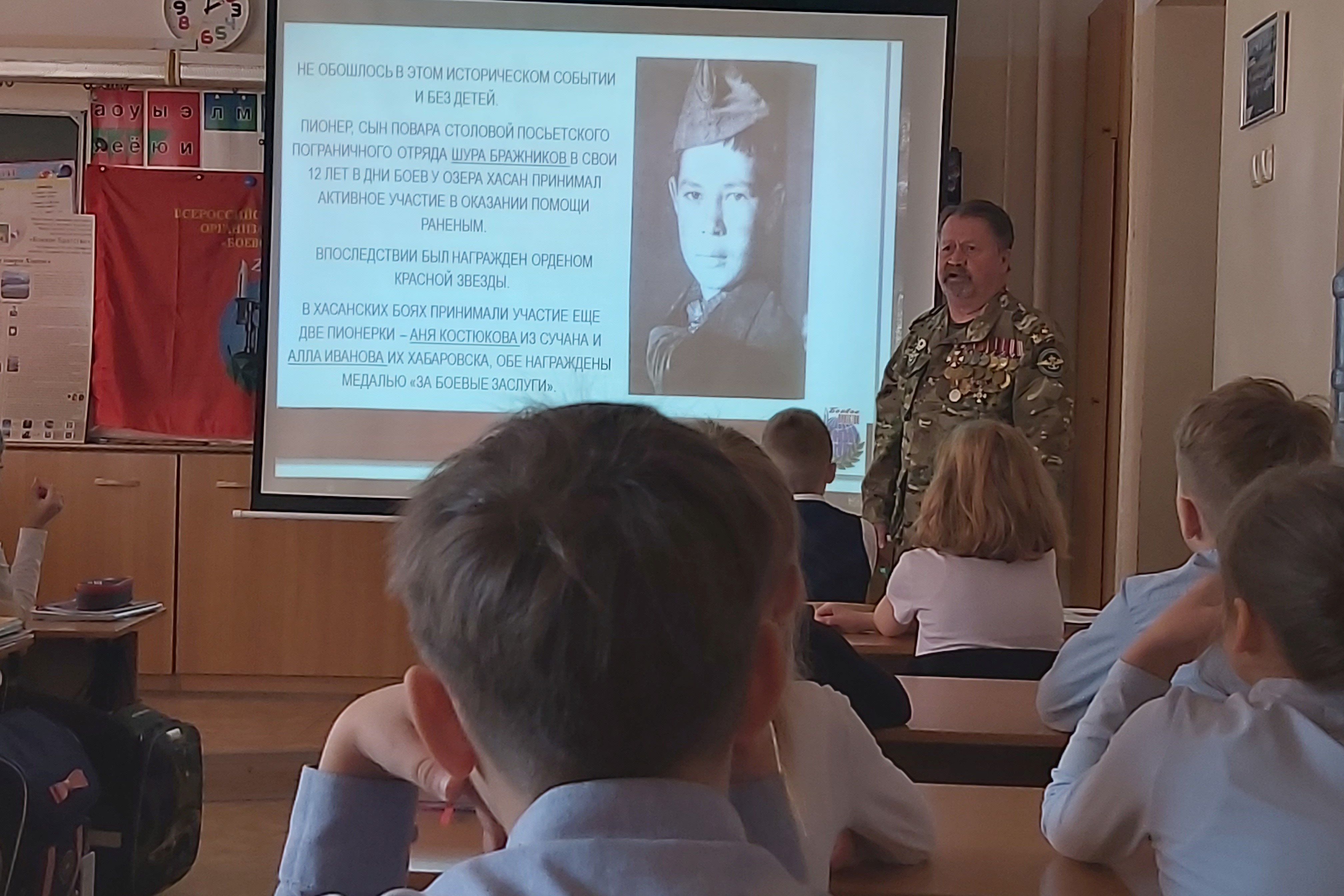 Главными темами мероприятий стали события на озере Хасан, военные профессии, герои России. На мероприятия были приглашены Александр Ситников — подполковник запаса и Семен Аникин — офицер запаса.