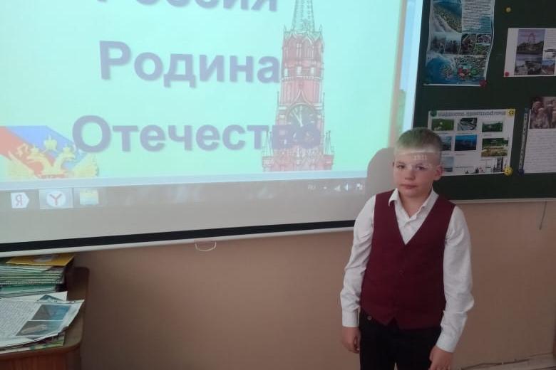 Встреча началась с просмотра и обсуждения электронной презентации «Россия, Родина, Отечество». Наиболее яркими были выступления Миланы Кузнецовой, Дениса Савченко, Аллы Шадриной.
