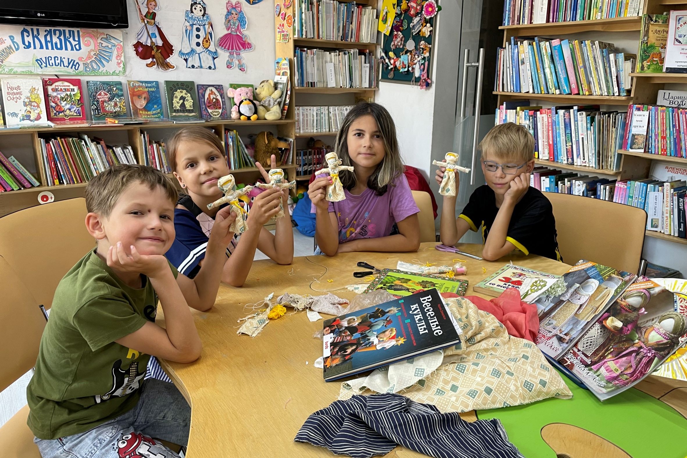 В детской библиотеке №7 реализуется проект «Народная кукла», целью которого является привитие интереса детей и подростков к традициям русского народа, к исторической памяти, опыту сотен поколений, приобщение детей к рукоделию, художественному труду и творчеству, декоративно-прикладному искусству и текстильному дизайну. В библиотеке занятия проходят ежемесячно, а также индивидуально. Славянская тряпичная кукла помогает детям осваивать традиции и обычаи рода. В этом году дети узнали про кукол Столбушка, Хороводница, Веснянка, Крупеничка, Крестец и многих других. Они слушали рассказы, сказки, всевозможные притчи, заговоры, заклички, потешки. Определились постоянные участники занятий, которые сами находят варианты кукол, которые хотели быть уметь делать.
