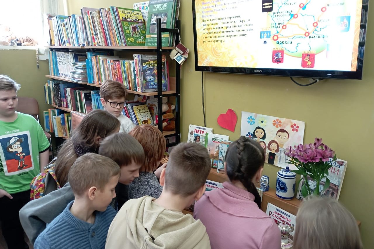 В марте в библиотеке №4 состоялось увлекательное виртуальное путешествие по знаменитому на весь мир туристическому маршруту «Золотое кольцо России». Юные путешественники из детского клуба «Эллады» увидели завораживающие картины старинных русских городов: Москва, Сергиев Посад, Переславль-Залесский, Ростов Великий, Ярославль, Кострома, Иваново, Суздаль, Владимир. Заочное путешествие по городам России организовала библиотека № 16 для ребят, посещающих детский сад № 68. Они побывали в городе Костроме и ее главным сказочным символом Снегурочкой. Кострома уникальна своей коллекцией деревянного зодчества, кистевой росписью. Встреча с главным сказочным символом Снегурочкой произошла после чтения одноименной сказки А.Н. Островского.