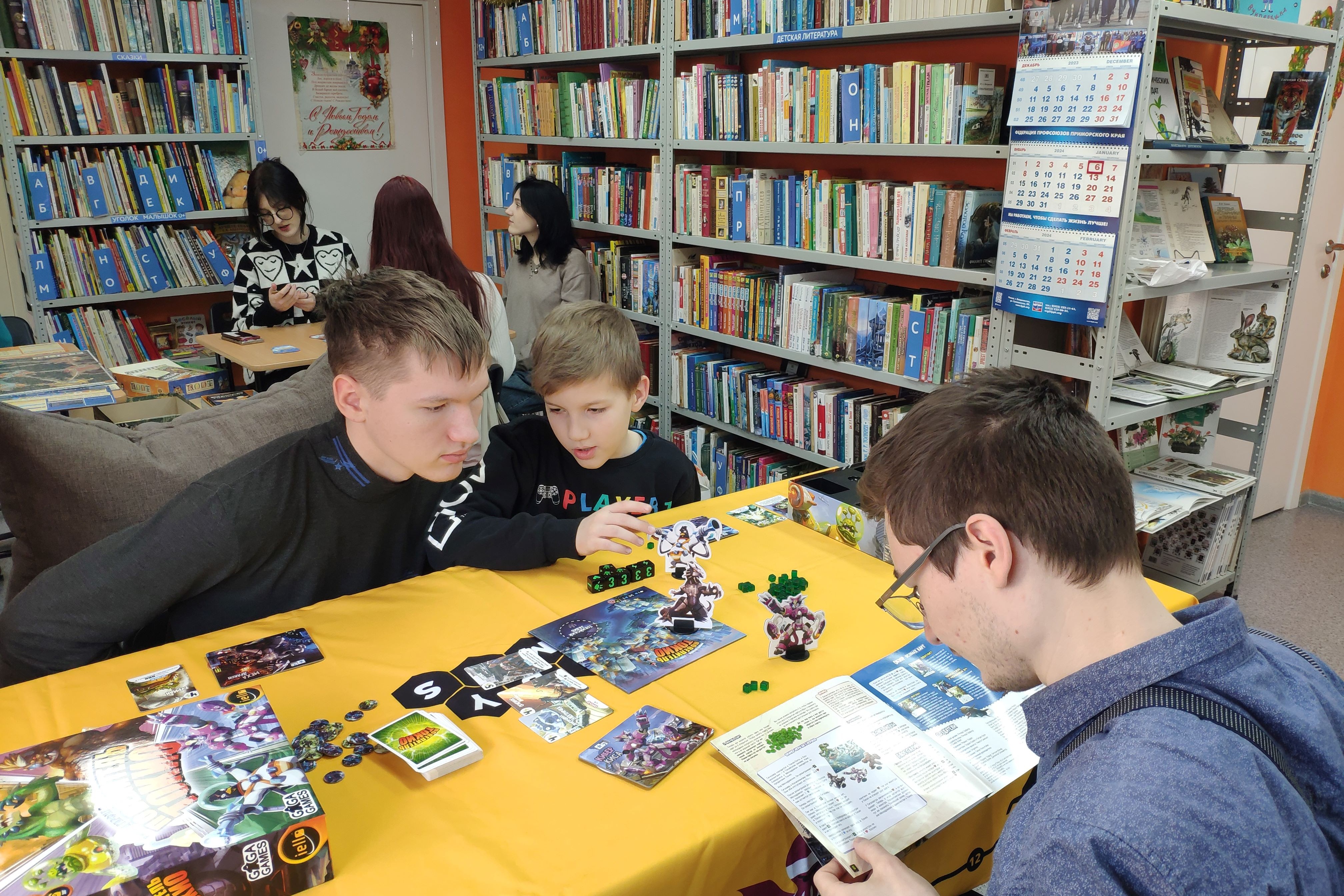 Свободное время в дни зимних каникул 6 января можно было провести в модернизированной библиотеке № 20 на Заре, где в рамках Краевого проекта «Библиотеки. Перезагрузка» организован отдых по интересам — новые настолки от «Hobby Games» – Владивосток для игроков разного возраста: «Взрывные котята», «Крокодил», «Каркассон», «Воображарий», «Мафия», «Мачи Коро», «Экивоки» и многие другие настольные игры.