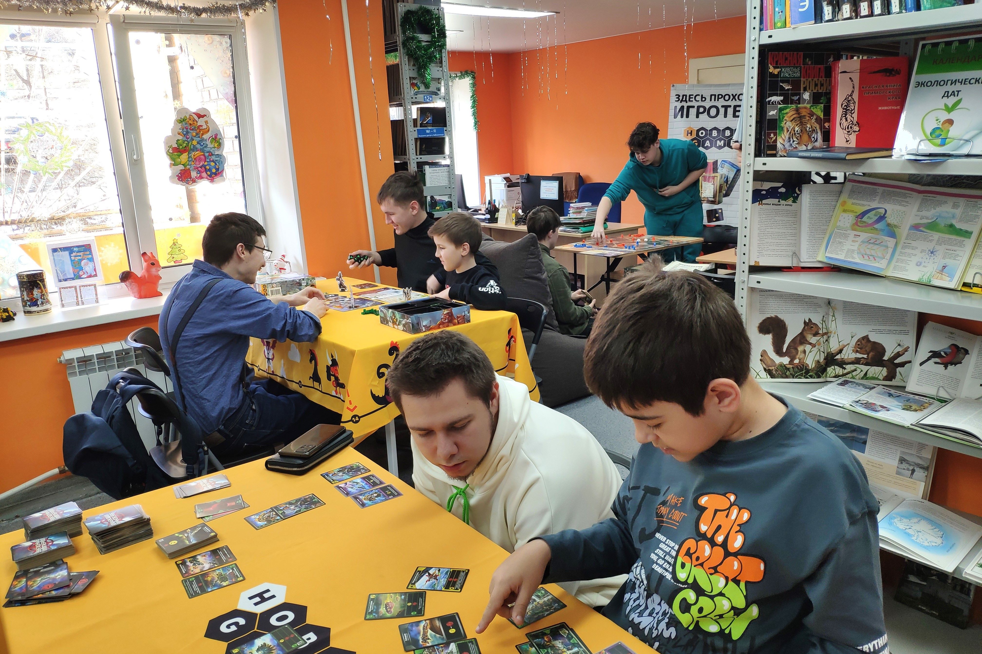 Свободное время в дни зимних каникул 6 января можно было провести в модернизированной библиотеке № 20 на Заре, где в рамках Краевого проекта «Библиотеки. Перезагрузка» организован отдых по интересам — новые настолки от «Hobby Games» – Владивосток для игроков разного возраста: «Взрывные котята», «Крокодил», «Каркассон», «Воображарий», «Мафия», «Мачи Коро», «Экивоки» и многие другие настольные игры.