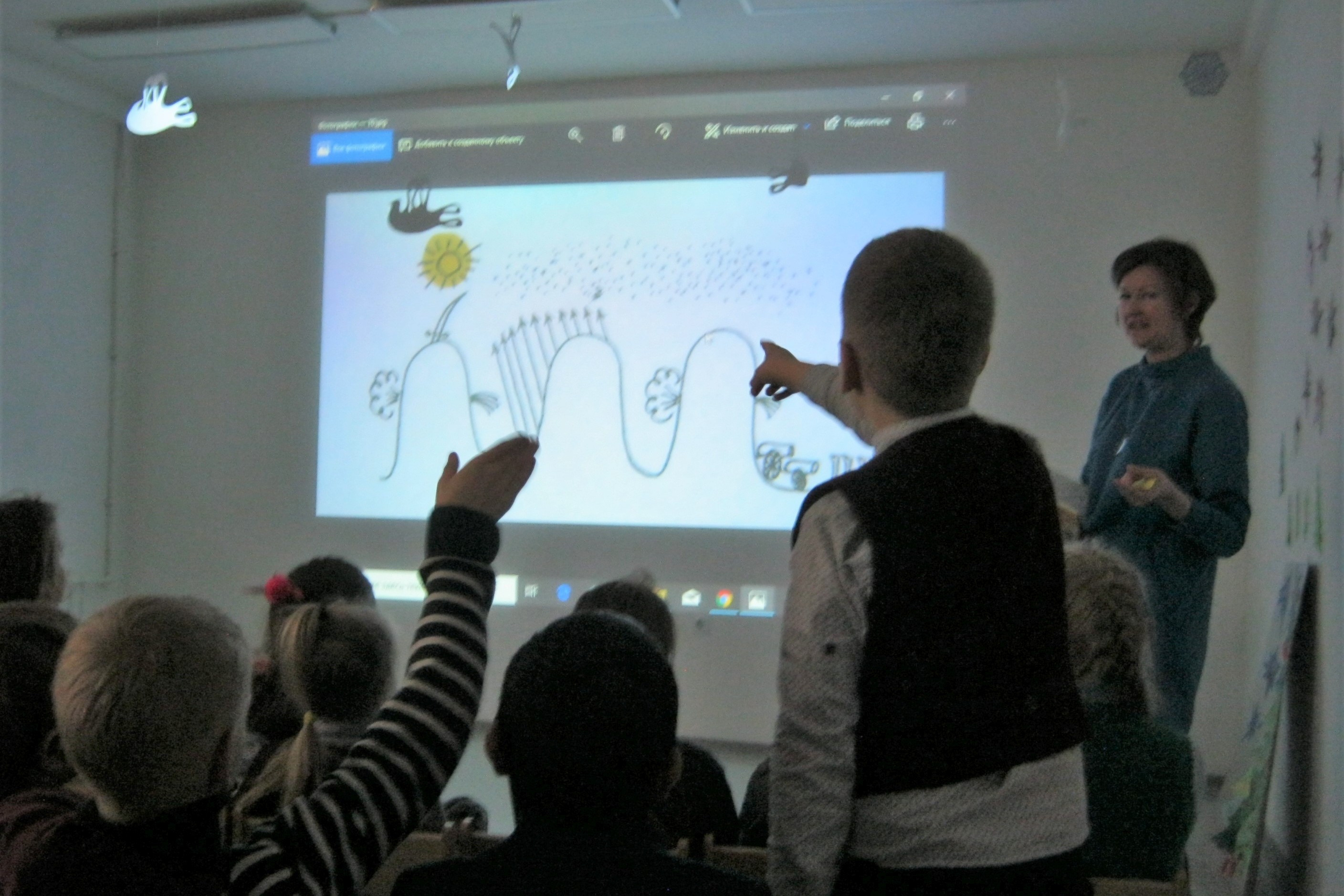 В конце занятия школьники всегда ждут мультфильм. С анимацией Леонида Шмелькова дети уже знакомы по «Грушепаду», а в этот раз второклассники смотрели «Собачью площадку», где финал как бы перекликается с трогательным окончанием рассказа про слона Вилли и его друга верблюда Сеню: слепой в фильме обрел снова свою потерянную собаку и утешился, а Вилли теперь не страшно ступать по сходням вслед за спокойным Сеней.