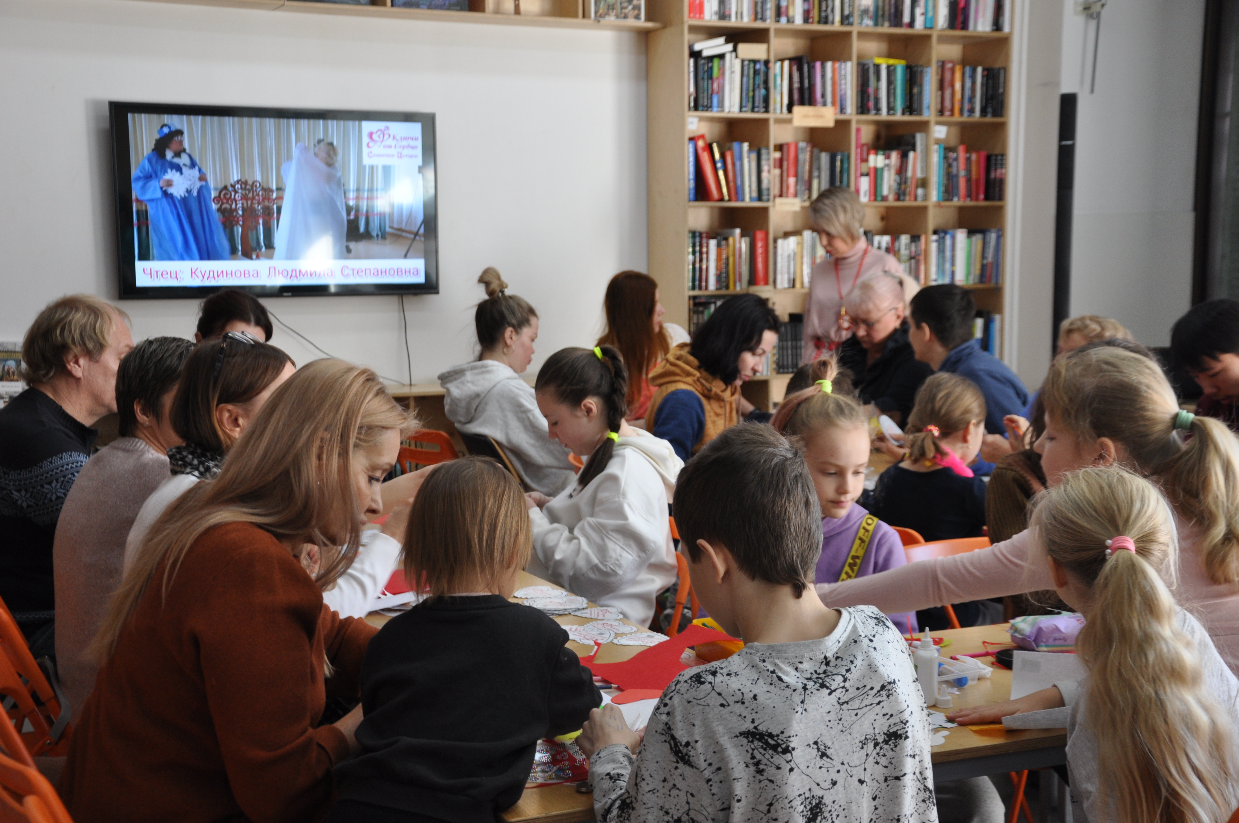 Гости всех поколений создавали открытки бок о бок, помогали друг другу и поддерживали друг друга. Общая творческая атмосфера захватила каждого, и родители, бабушки и дедушки присоединились к работе. Был организован чайный уголок, где участники могли отдохнуть и перекусить, а также прослушивание сказок, созданных людьми из организации «Ключи от сердца».
