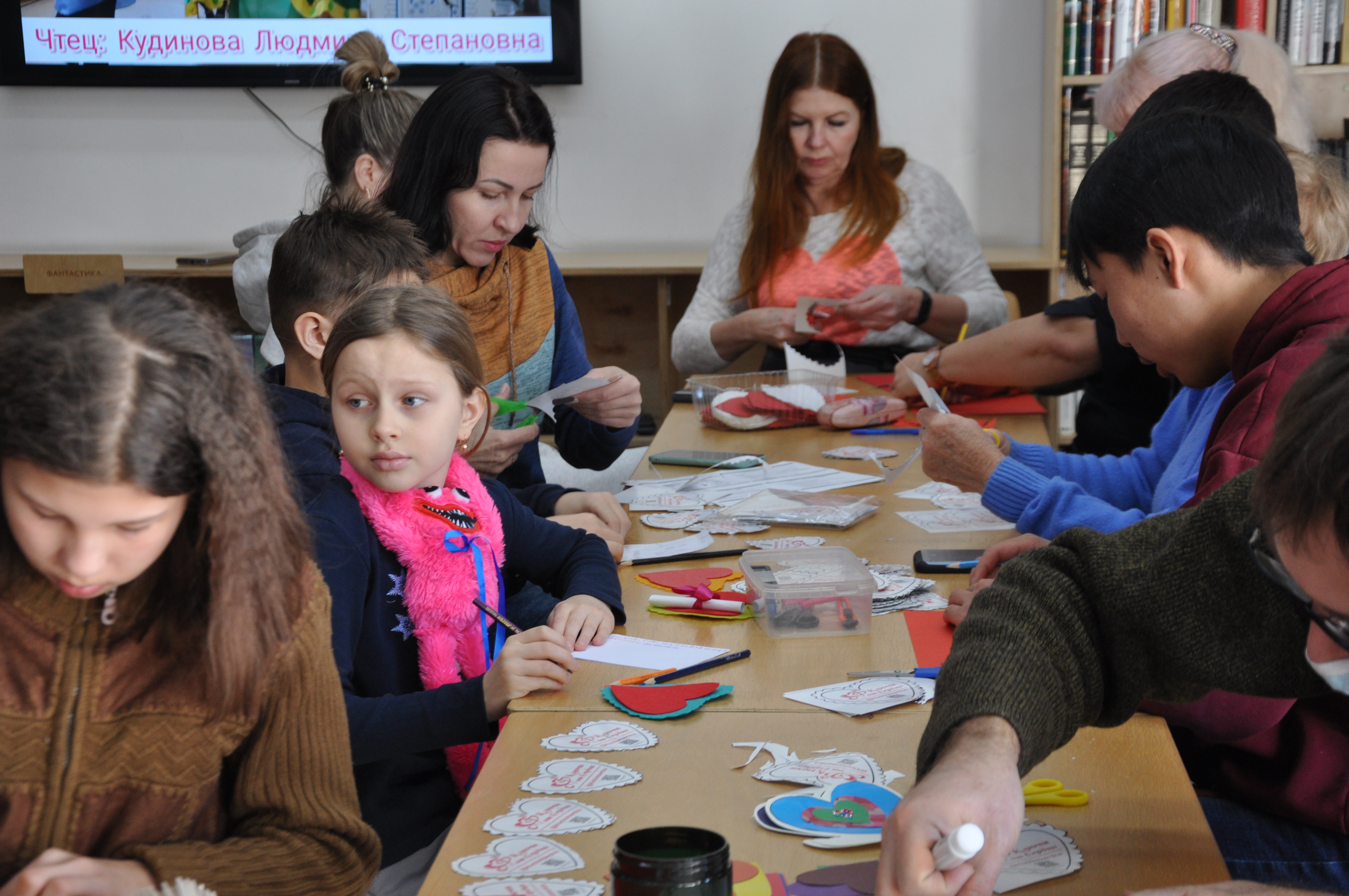 Дети и взрослые творили вместе, вырезали сердечки и украшали их. Все участники создали по несколько открыток, часть из которых забрали в качестве подарков друзьям и родным, а часть оставили для детей в трудной жизненной ситуации и ребят, находящихся на лечении. Кроме обычных валентинок гости сделали также открытки с поздравительными свитками, красивые сувениры с сердцами и открытки-улитки.