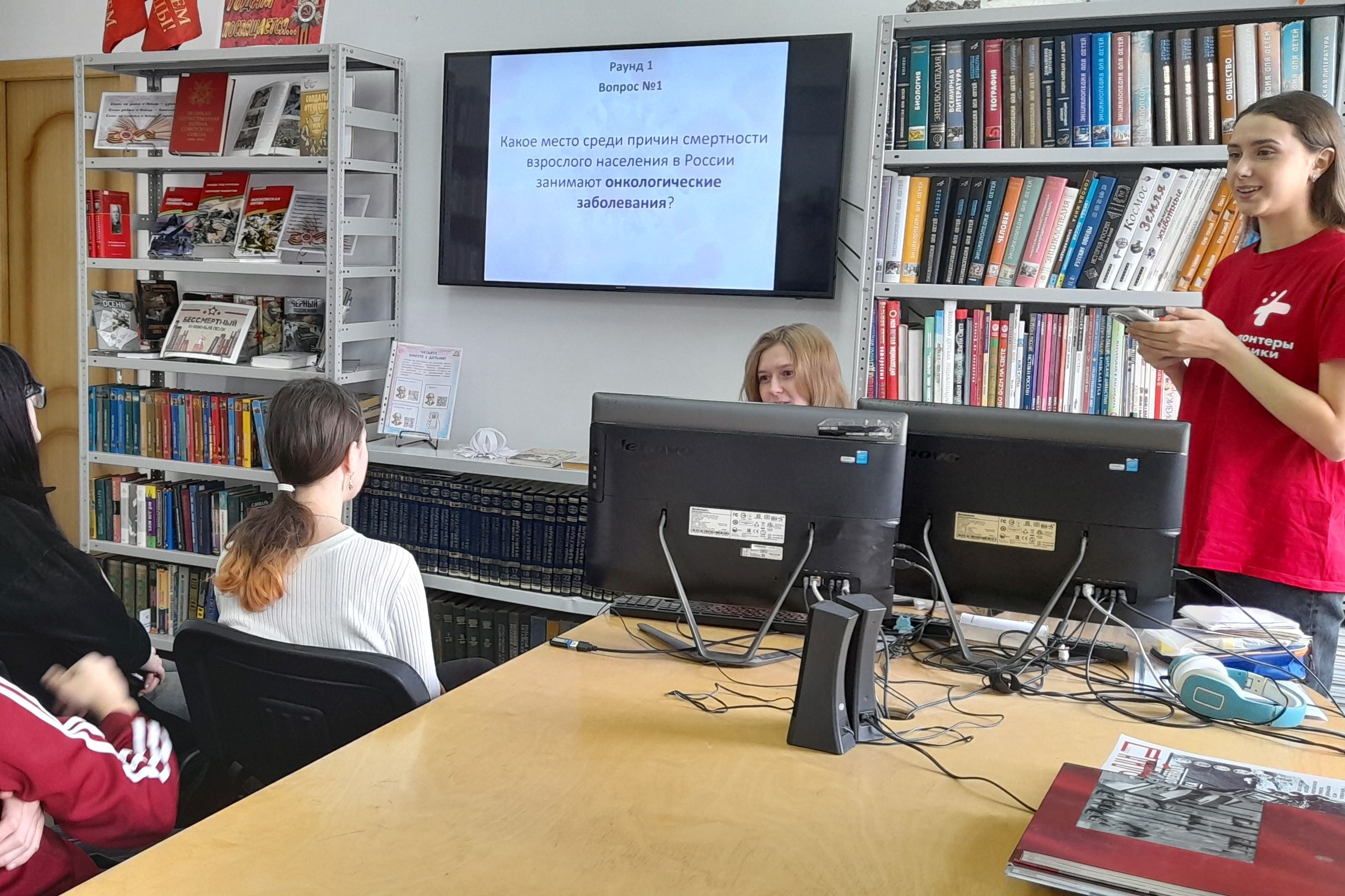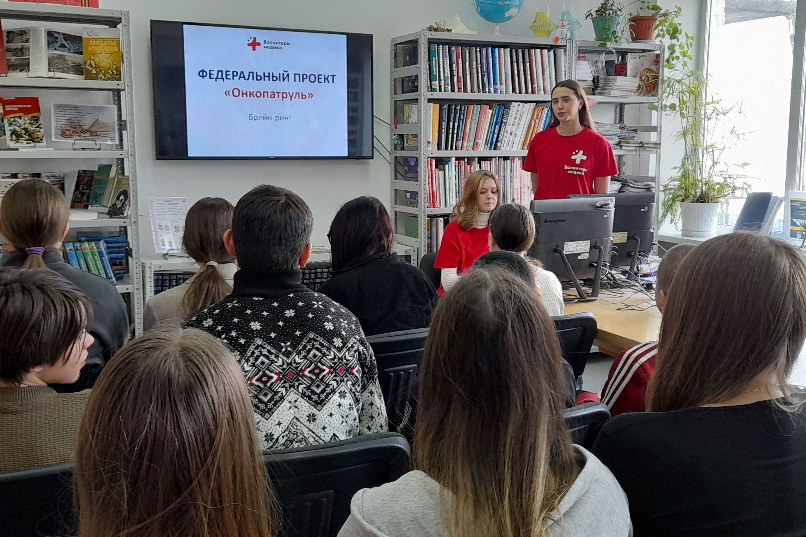 В библиотеке №16 волонтеры Всероссийского движения волонтеров-медиков, студенты Тихоокеанского государственного медицинского университета Власенко Софья и Зарецкая Ксения в рамках Всероссийской акции «Рак боится смелых», провели для старшеклассников СОШ № 43 брейн-ринг, направленный на повышение уровня информированности старшеклассников о причинах развития онкологических заболеваний, их профилактике, своевременной диагностике и основах лечения.