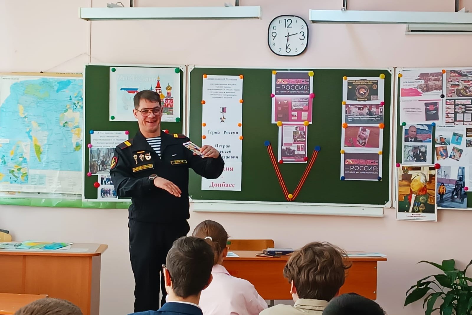 Встреча бойца и школьников 7 «А» класса СОШ № 61 прошла в форме беседы. Гость рассказал о своем детстве и увлечениях, о семье военных, в которой рос. До войны Алексей занимался страйкболом, эти навыки спасли ему жизнь на поле боя. Также боец рассказал, как важно хорошо учиться в школе и заниматься спортом.