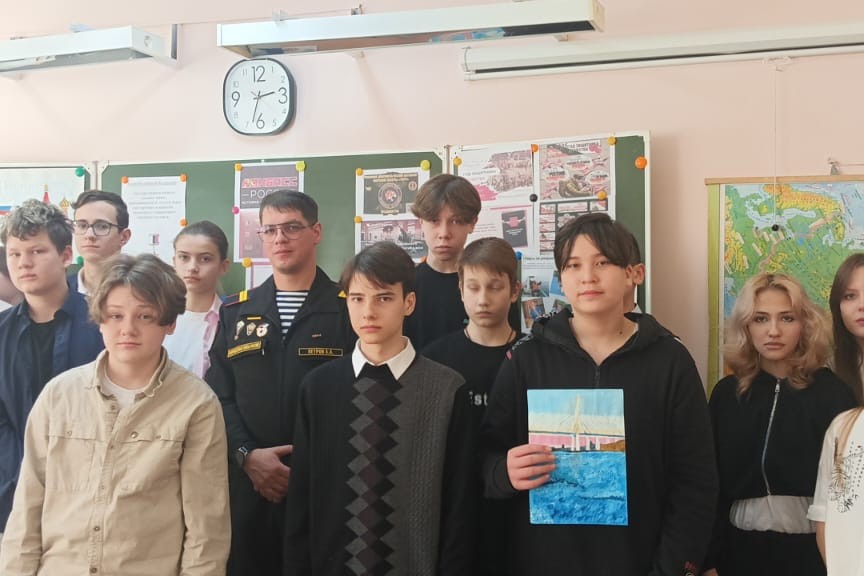В завершение встречи классный руководитель, Надежда Алексеевна Матушкина, и школьники 7 «А» класса поздравили Алексея Петрова с наступающим праздником, Днем защитника Отечества, передали волонтеру фонда «Своих не бросаем», Файрузе Власенко, детские рисунки и сладости для бойцов, находящихся на лечении в госпитале.