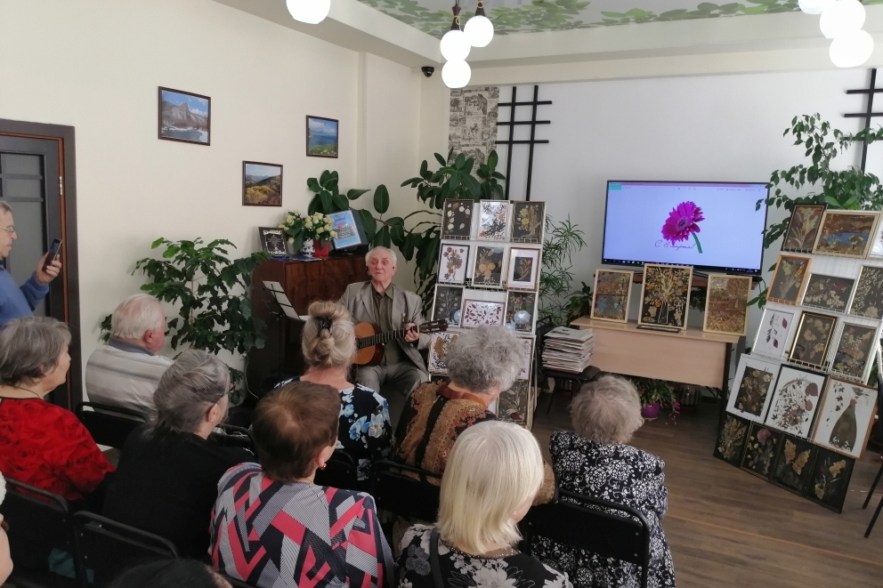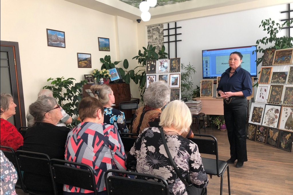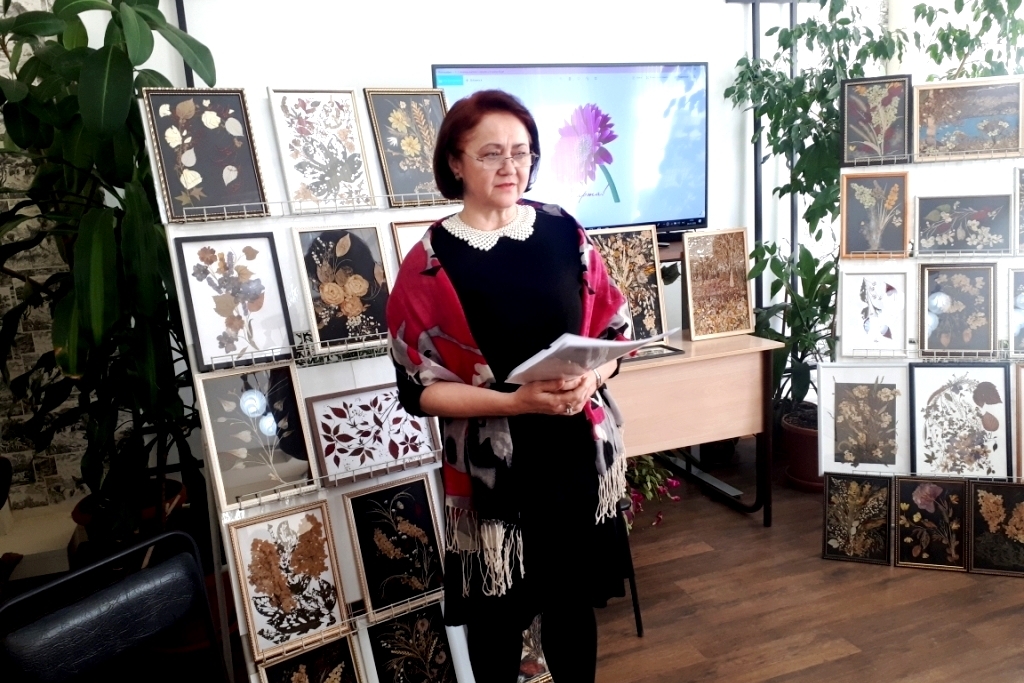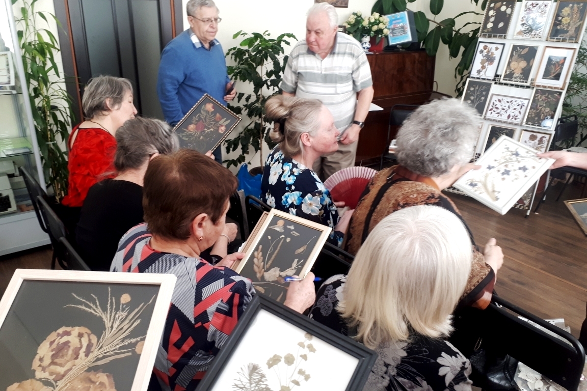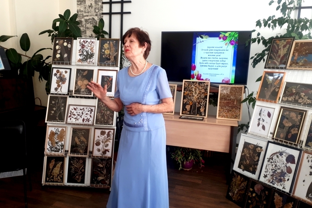На мероприятии была представлена выставка работ из бисера Татьяны Алексеевны Гасенко и персональная выставка картин-гербариев Лидии Николаевны Старжинской, которая работает в технике «Ошибана».