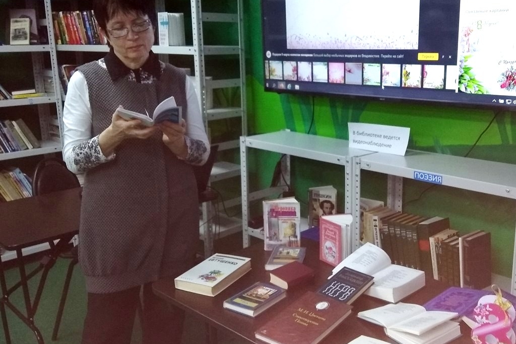 Светлана Казанцева, поэтесса, член Российского союза писателей, прочла свои стихи. Участница театральной студии при клубе «Исток» Евгения Юрьевна Геласимова поздравила всех гостей библиотеки тёплыми, весенними словами и стихотворениями.