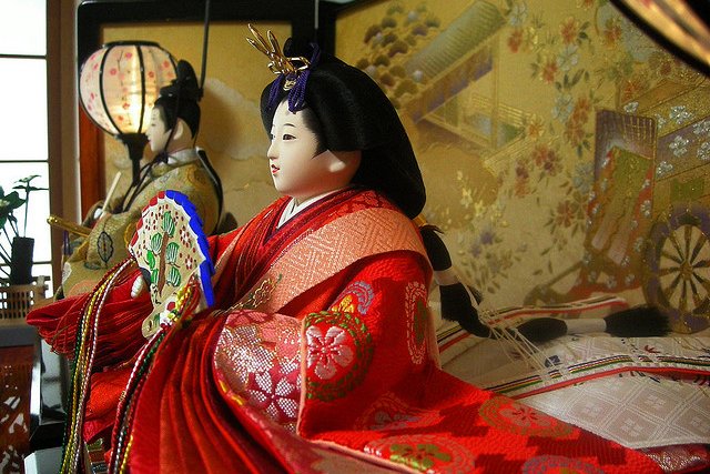 Хинамацури празднуют 3 марта по всей стране, это фестиваль с более чем 1000-летней историей, а символом его являются особые куклы хина-нингё. В домашний набор входят по крайней мере несколько пар кукол, а стандартное количество — 15 хина-нингё, которые располагаются на специальной ступенчатой подставке хинадана, покрытой тканью богатого алого цвета, и изображают аристократическую свадьбу периода Хэйан. Причем самые важные, дорогие и красивые куклы о-дайри-сама, изображающие аристократическую чету, располагаются на самой верхней платформе, ниже придворные, воины и в самом низу может размещаться миниатюрная мебель и даже фигурки домашнего скота. Японские куклы постепенно превратились в реликвию. Изготовление этого атрибута праздника – большое искусство. Его вырабатывали и накапливали веками. Каждую игрушку наряжают в традиционные одежды. Лица разукрашивают. Дамам сооружают традиционные прически. Императрица одета в 12 кимоно, как положено при официальной церемонии. У музыкантов в руках инструменты. Фрейлины тоже держат миниатюрные копии атрибутов, которые использовались в церемонии разливания сакэ.