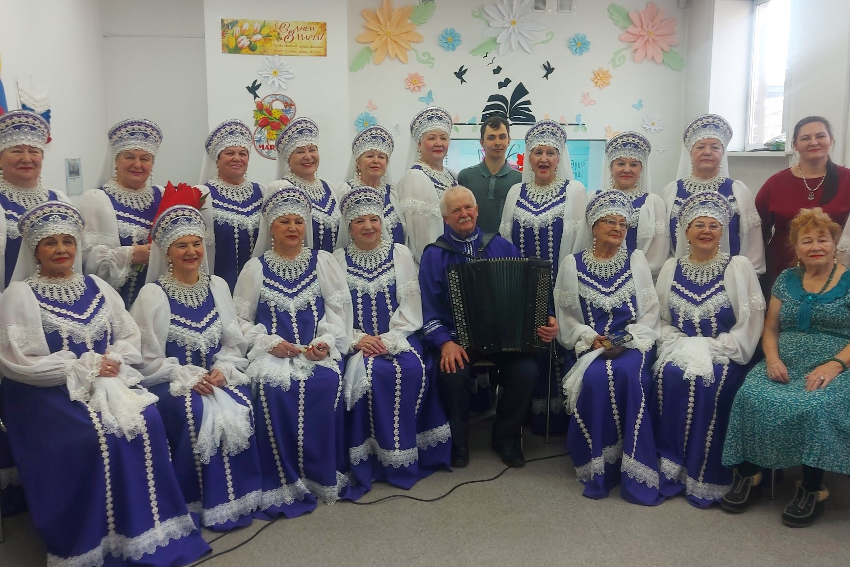 Этот коллектив на протяжении многих лет бережно хранит традиции народной песни. Для зрителей прозвучали лирические, хороводные, русские народные песни и были исполнены новые песни «Ты цвети, Россия», «Милая роща». Депутат Законодательного Собрания – Чемерис Игорь Святославович поздравил коллектив хора «Жемчуга» и его руководителя Шаликову Валентину Кузьминичну с наступающим праздником 8 марта.