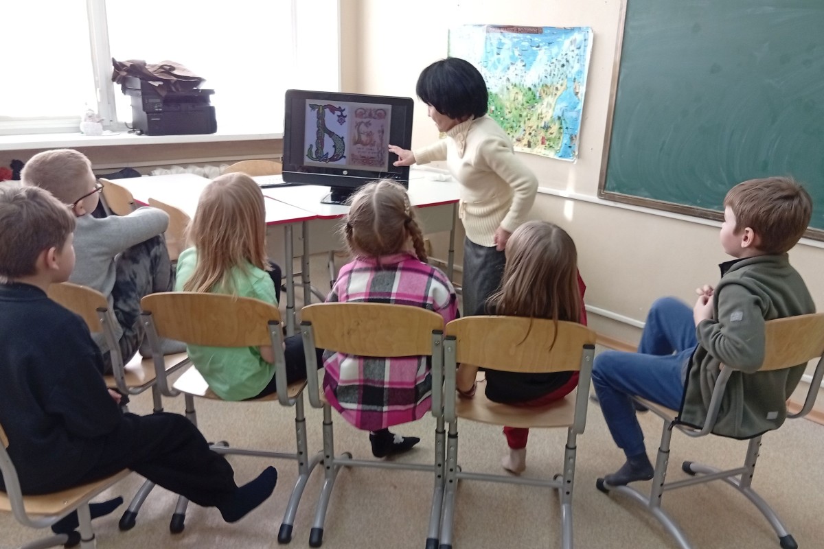 Воспитанникам группы продленного дня «Умный кот» сотрудники библиотеки №13 рассказали о Кирилле и Мефодии, посвятивших всю свою жизнь созданию и распространению русской письменности. Дети узнали, что почти все жители средневекового Новгорода были грамотными и переписывались с помощью записок на бересте, а в Европе умели читать и писать только некоторые священнослужители. Особенно им понравилось, что их ровесник, новгородский мальчик Онфим, когда учился писать на кусочке бересты, также как и они, не мог удержаться от того, чтобы не изобразить себя в виде конного воина, разящего врага. Ребята восхитились красивыми «буквицами», украшавшими старинные книги и сами сделали азбуку с такими буквицами.