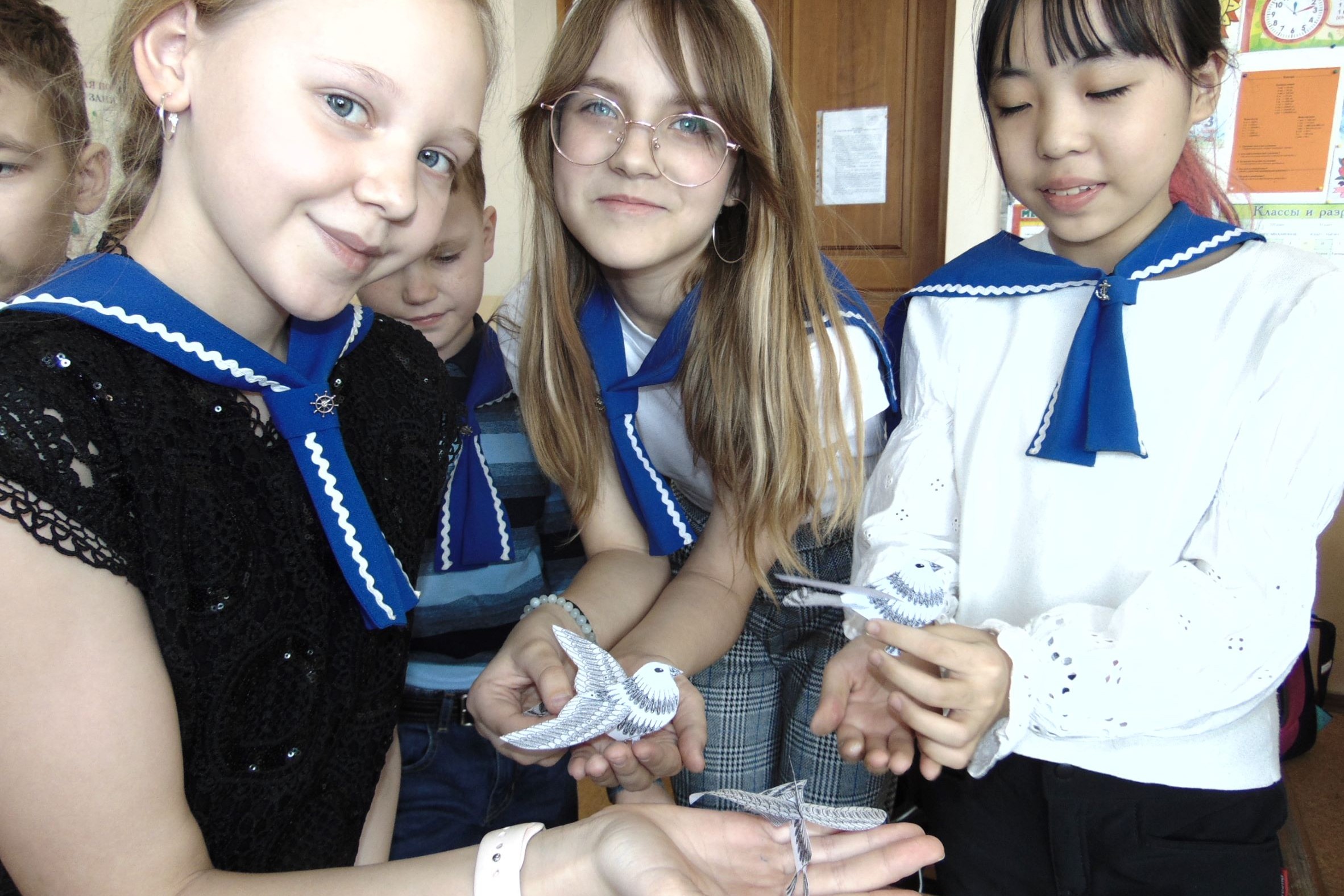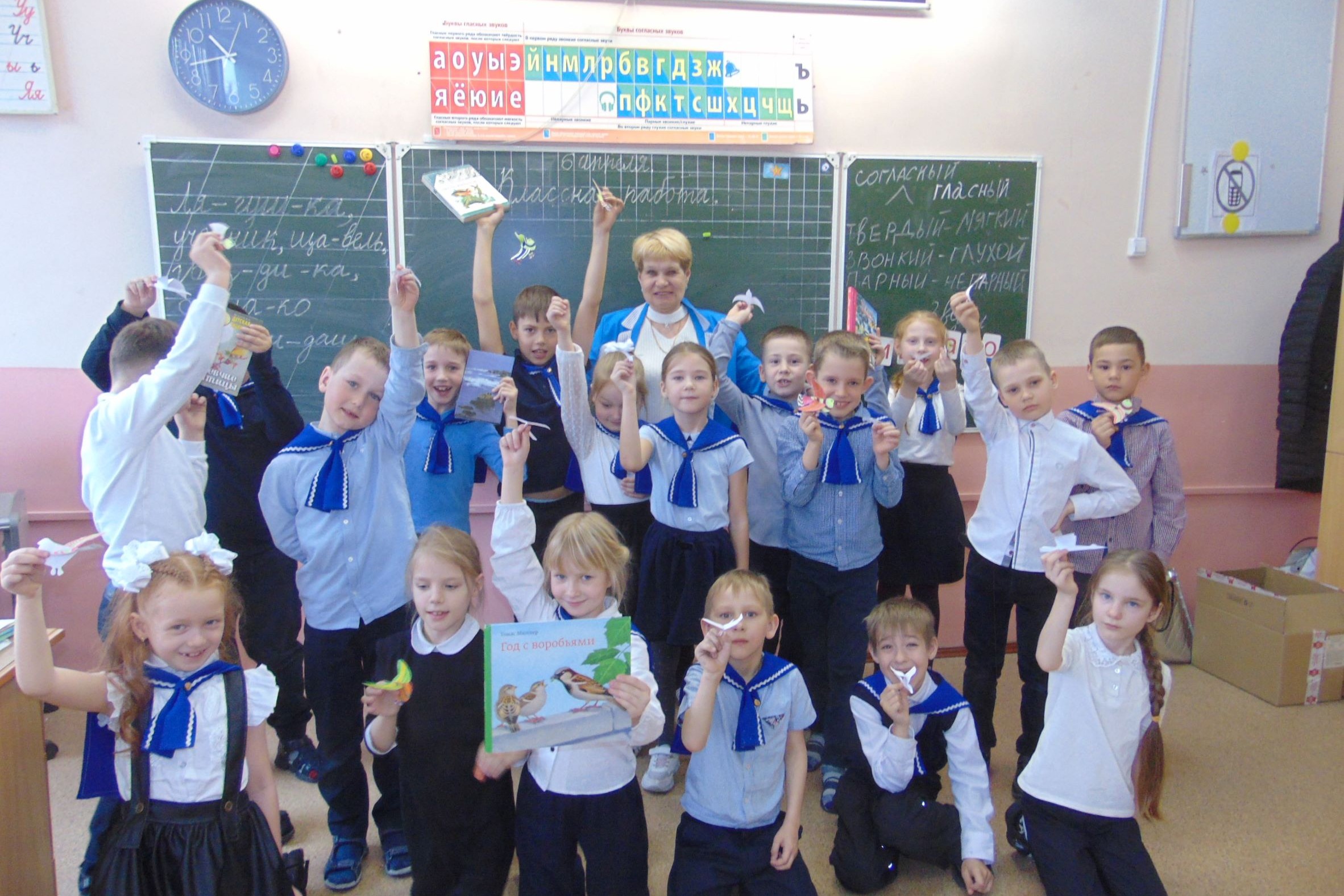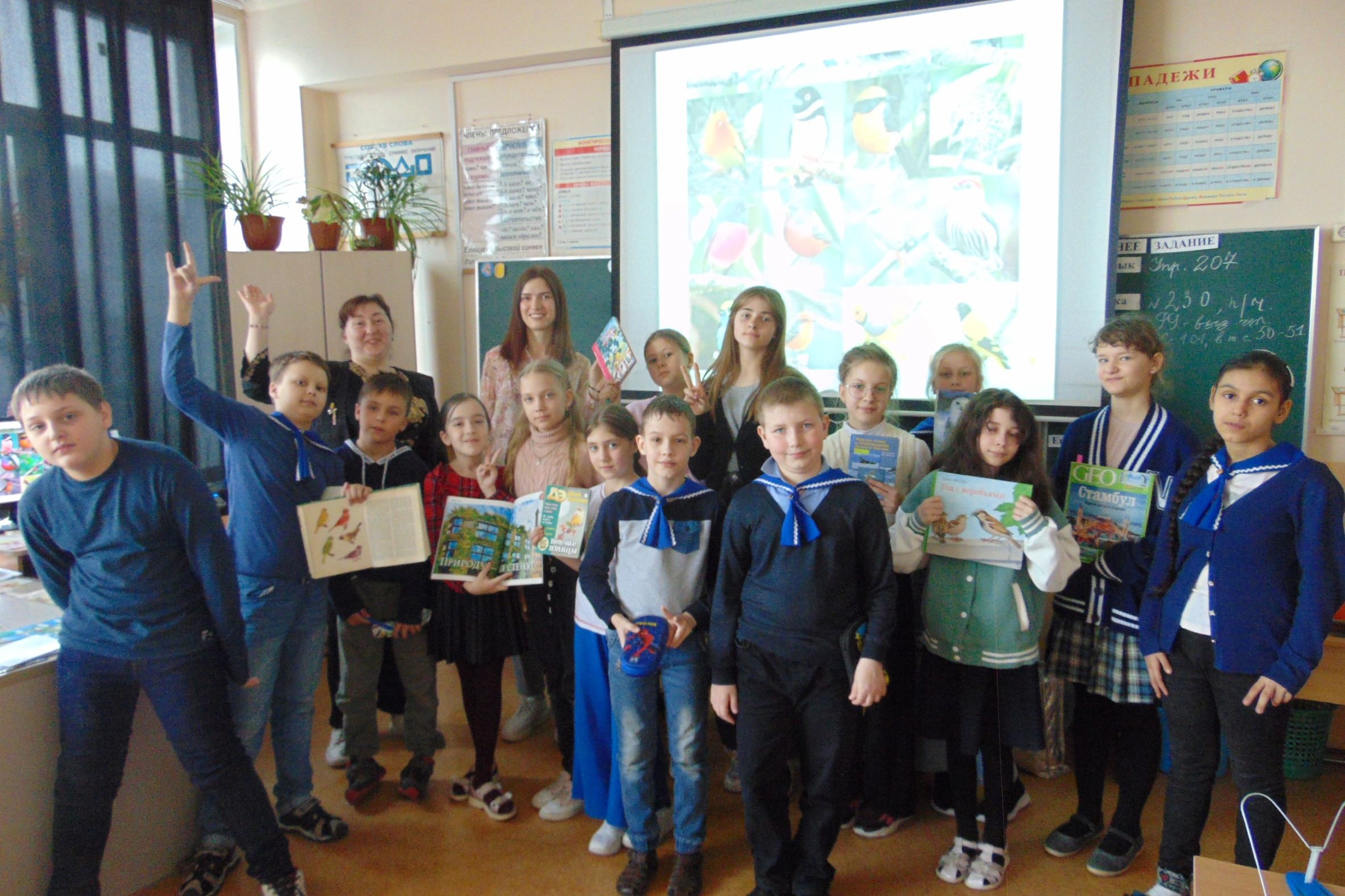 Библиотекарь Линдун Виктория Олеговна подготовила и представила обзор наиболее интересных книг и журналов из фонда библиотеки, посвящённых самым разным птицам. Дети послушали пение пения различных представителей орнитофауны. Детей особенно удивил необыкновенный «разговор» на человеческом языке канарейки Пинчи, «сказочным» тонким голоском повторяющей слова своей хозяйки: «Вот какие птички!». Ребята даже не поверили сначала, что это совершенно чисто говорит птица, а не ребёнок. Особенный восторг у школьников вызвал документальный фильм об нелетающих птицах пингвинах и их необычных способностях. В ходе литературной художественной странички школьники прослушали небольшой отрывок о редкой и уникальной птице белоголовом орлане из книги Владимира Клавдиевича Арсеньева «Сквозь тайгу» и рассказ Виталия Бианки «Музыкальная канарейка». Вся информация, полученная лицеистами, была направлена на то, что необходимо обращать внимание и заботиться о птицах, формировать полезную привычку подкармливать городских птиц, не разорять гнёзд, не кидать в птиц камни, бережно и осторожно относиться к пернатым, как в городе, так и на природе. На творческой мастерской ребята из сделанных заранее бумажных шаблонов в разных техниках сделали аистов, ласточек и райских птичек, которые долго будут.