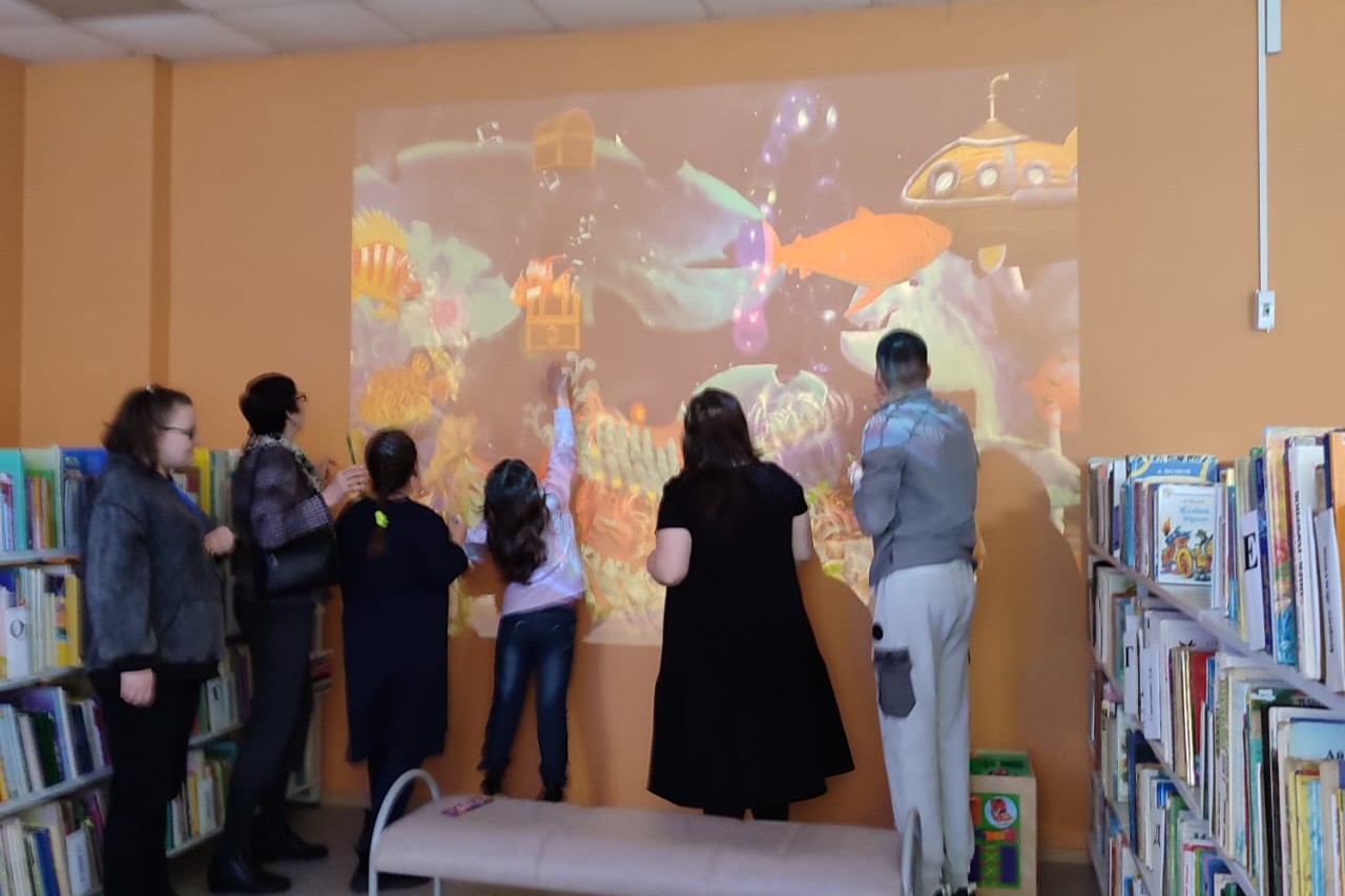 В комнате «Оазис» ребята рассматривали звездное небо и модель Солнечной системы. Очень порадовали ребят игры в интерактивной песочнице, на стене «Ожившие рисунки», а также, подвижная игра на запускание бумажных самолетов. Встреча завершилась мастер-классом по изготовлению книжной закладки с космической атрибутикой. В свою очередь, ребята подарили сотрудникам библиотеки открытки, сделанные своими руками.