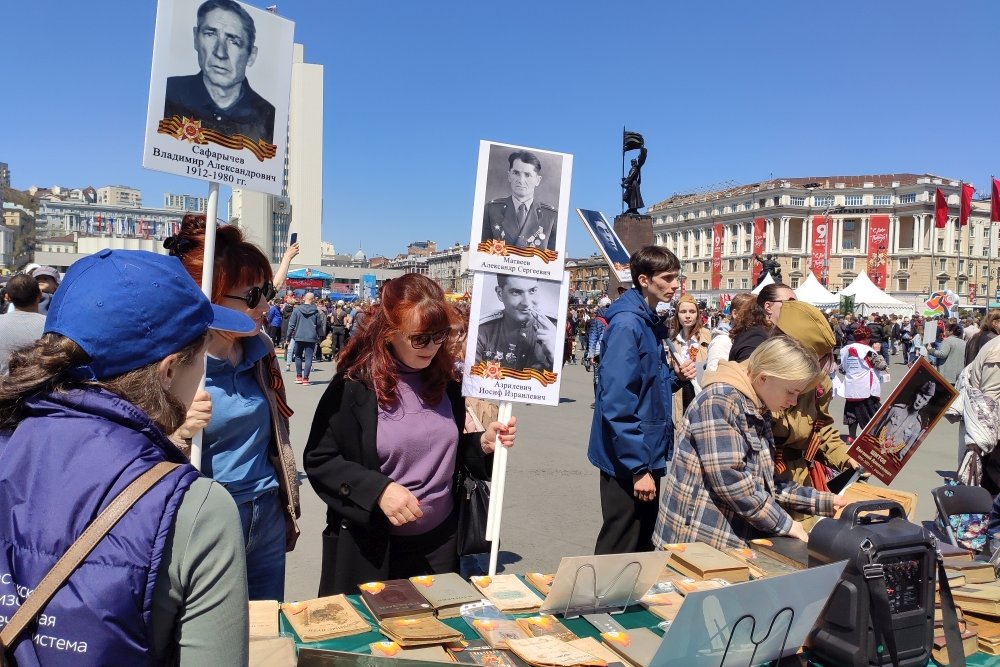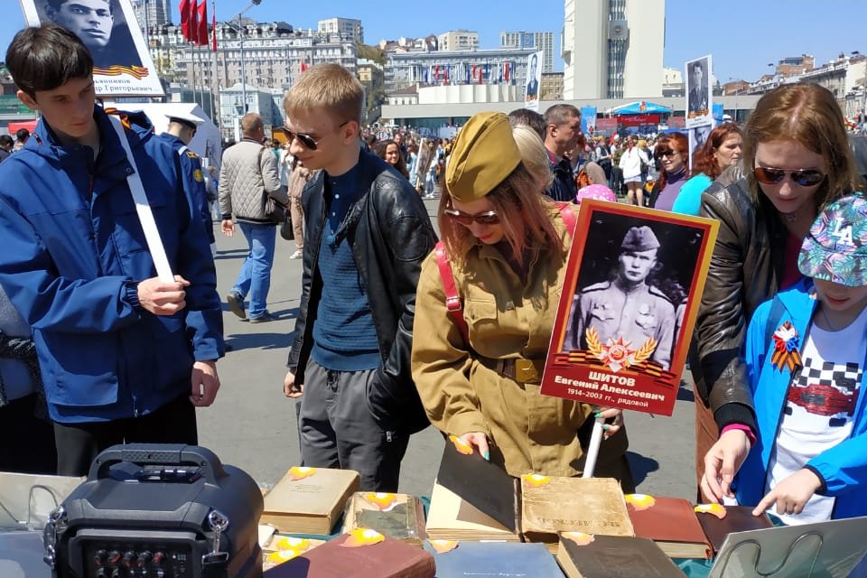 Также участники праздника Победы во Владивостоке раскрыли фонд библиотечных книг, посвященных страницам истории Великой Отечественной войны, героям и подвигам её участников.
