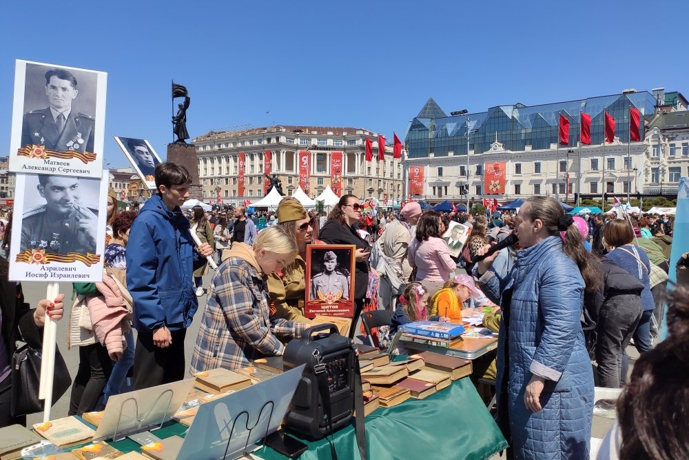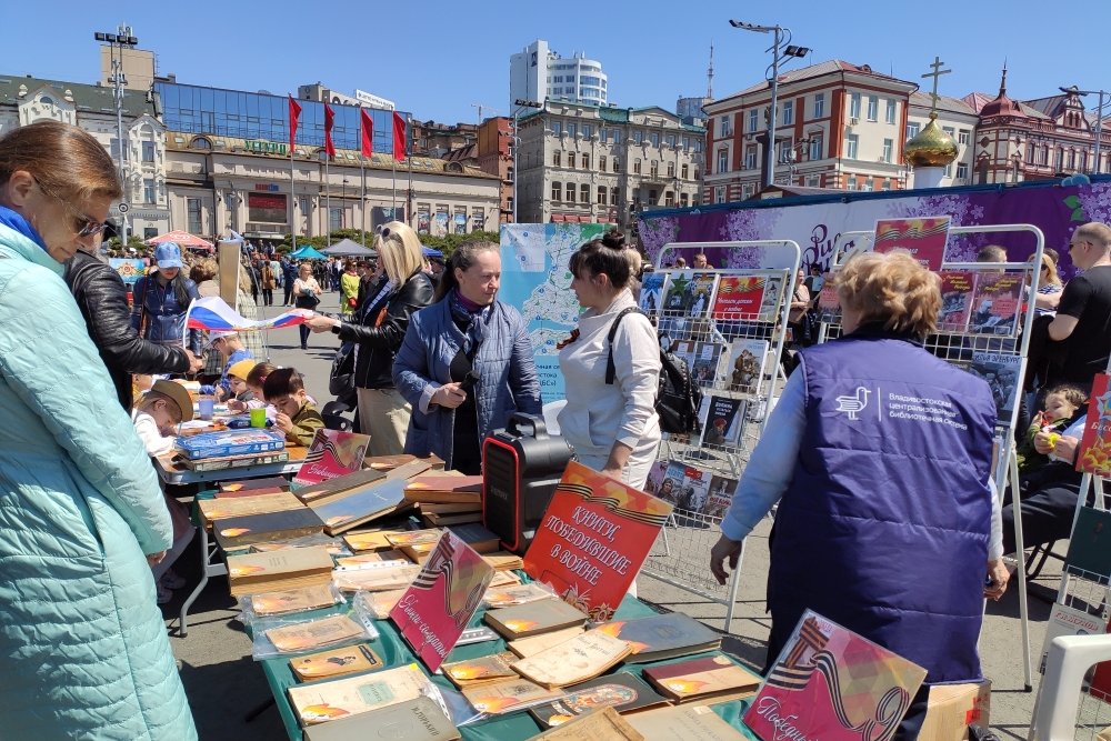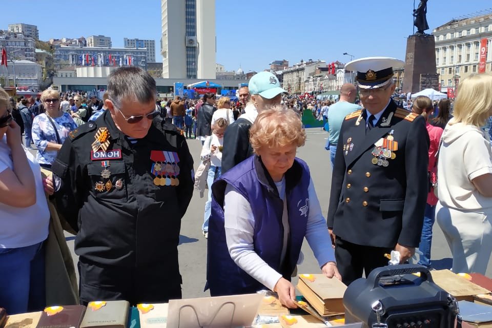 Тысячи горожан и гостей города знакомились с книгами, представленными библиотеками библиотечной системы Владивостока на площади Борцам революции на празднике Дня победы.