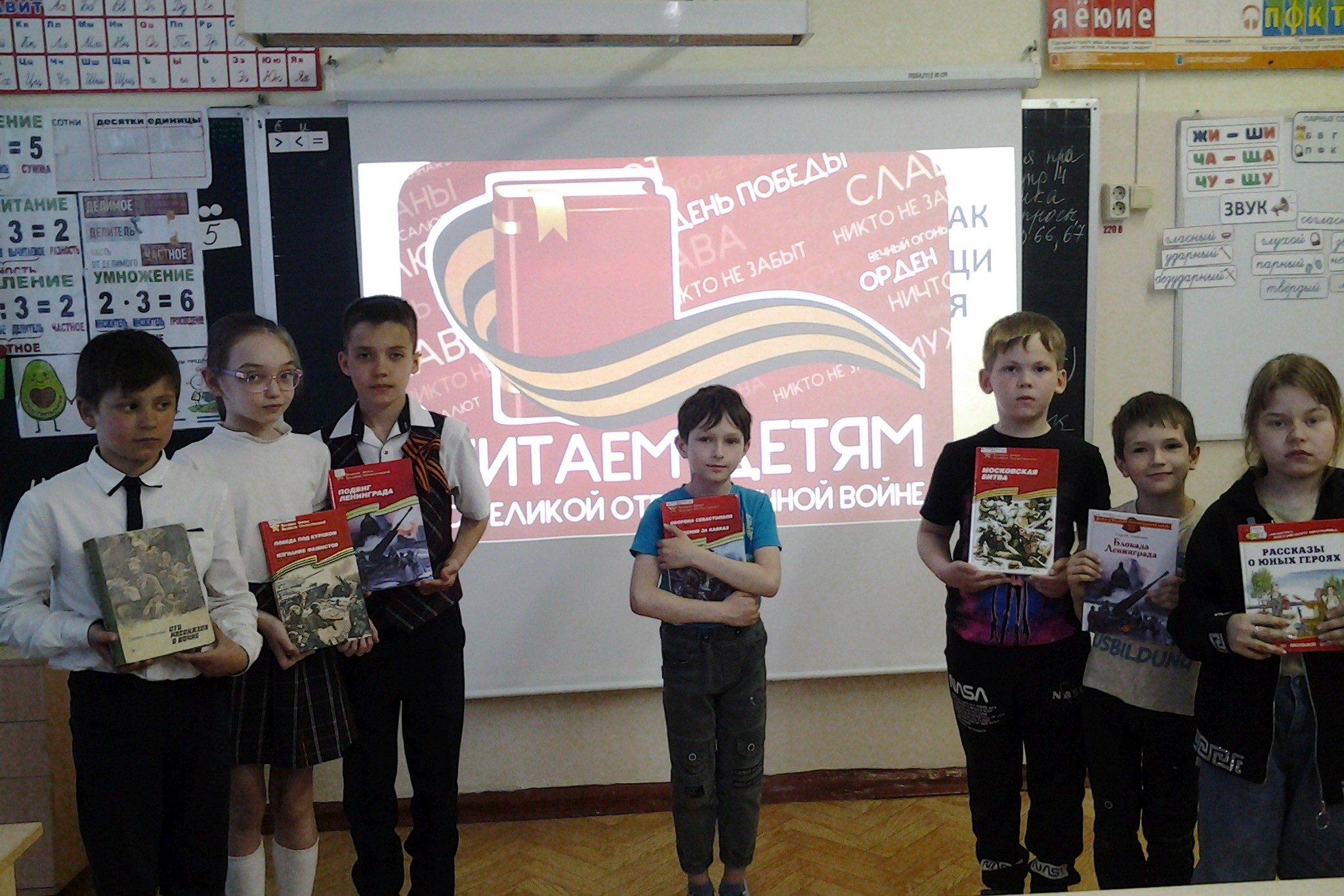 Ученики 1, 2, 3, 4 классов ООШ 1 стали участниками XIV Международной акции «Читаем детям о Великой Отечественной войне». Сотрудники библиотеки № 16 рассказали ребятам об основных сражениях Великой Отечественной войны, о детях-участниках войны, об акции «Бессмертный полк», которая ежегодно проходит во всех городах России. Школьники послушали рассказ С.П. Алексеева «Геннадий Сталинградович».