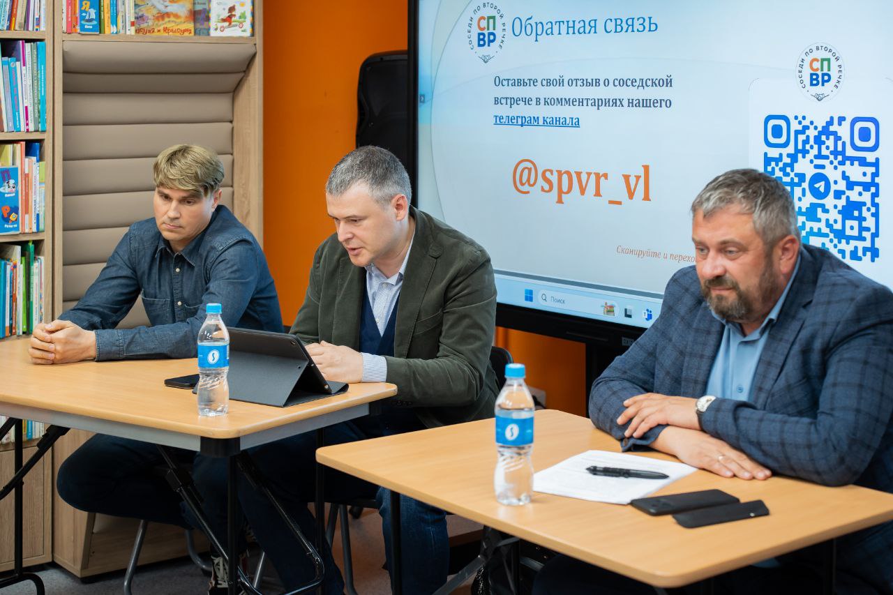 Продолжаются встречи в рамках социального партнерства библиотеки №20 и представителей сообществ микрорайона. В конце мая в рамках реализации Социального проекта «Соседи» и проекта «Библиотеки Приморья. Перезагрузка. Вечерняя библиотека» на площадке модернизированной Библиотеки № 20 состоялась очередная «Соседская встреча», вновь организованная группой активных горожан «Соседи по Второй Речке» (СПВР).