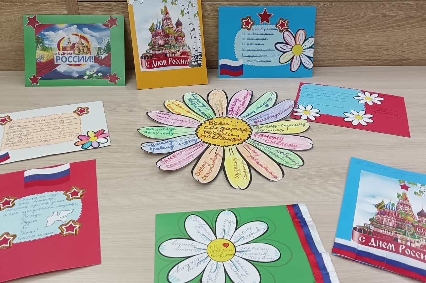 Читатели и сотрудники библиотек города Владивостока (Библиотеки № № 3, 4, 7, 13, 15, 16, 20) приняли участие в акции «Открытка солдату ко Дню России». Дети самого разного возраста – от дошколят из подготовительных групп детских садов и до учеников 7-12 лет с энтузиазмом взялись за дело: рисовали, раскрашивали, делали аппликации. Праздничные открытки получились отлично! Также к творчеству подключились и взрослые – родители и библиотекари. Было изготовлено 120 открыток. Участники СВО получат ко Дню России теплые, искренние слова, написанные от самого сердца.