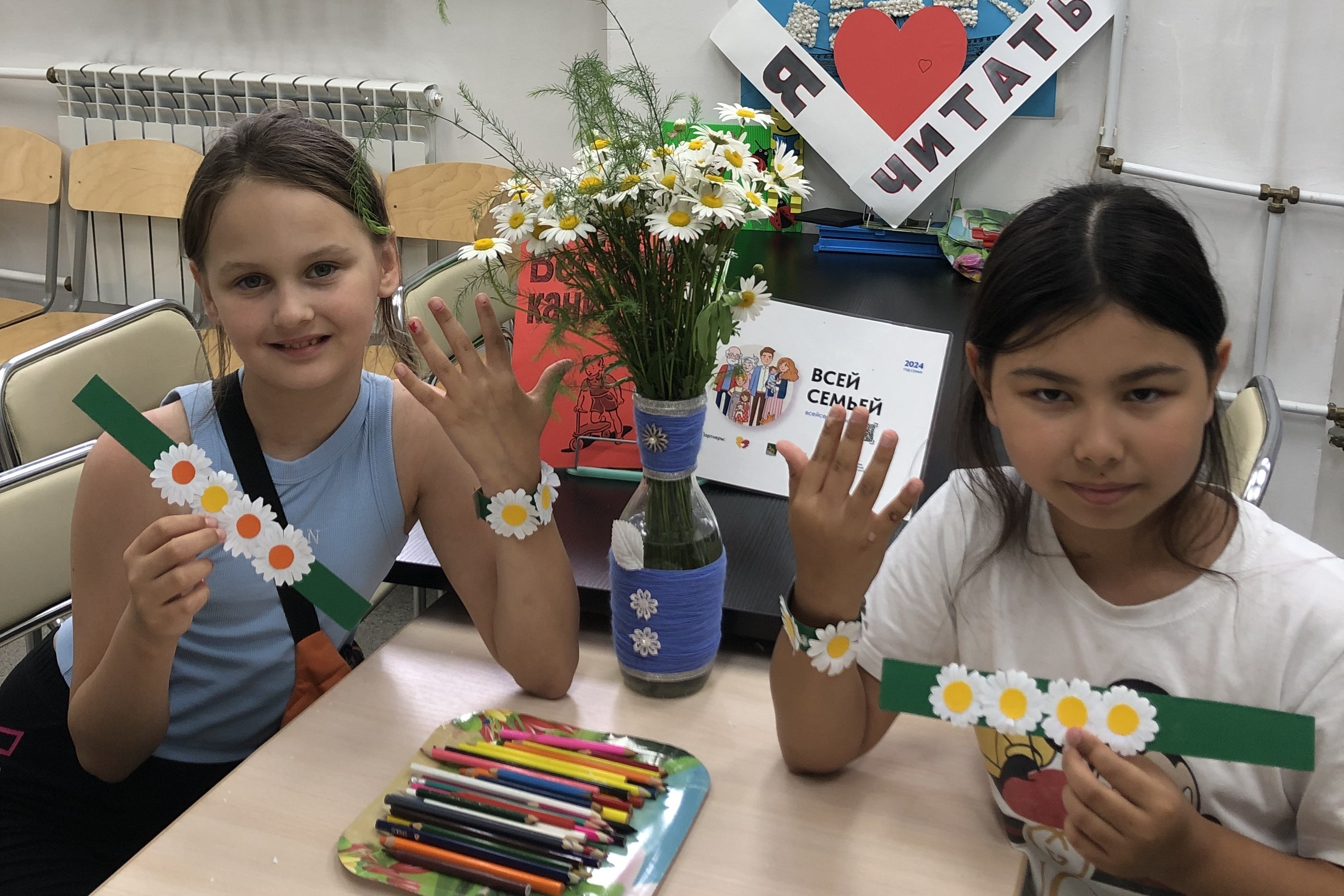 Библиотека № 2 провела литературно-игровую игру детском саду № 20 п. Трудовое, посвященную семейному празднику. Началось мероприятие с беседы-рассуждения о тёплых моментах семейного чтения, о любимых литературных персонажах. В конкурсе «Сказочное ассорти» ребята отгадывали фразы из сказок, участвовали в весёлой разминке «Как я помогаю дома». В творческом конкурсе «Нарисуй свою семью» участники представили и нарисовали портрет мамы и папы. В заключении ребята познакомились с книгами из фонда библиотеки о семье и дружбе. На мастер-классе в библиотеке № 2 для юных читателей предложили смастерить ромашковый браслет из бумаги и картона, который станет дополнением к семейному празднику. Каждый из участников захотел изготовить по два браслета, для себя и своей мамы. Сделанные браслетики прикрепили на запястье и получился красивый летний аксессуар.