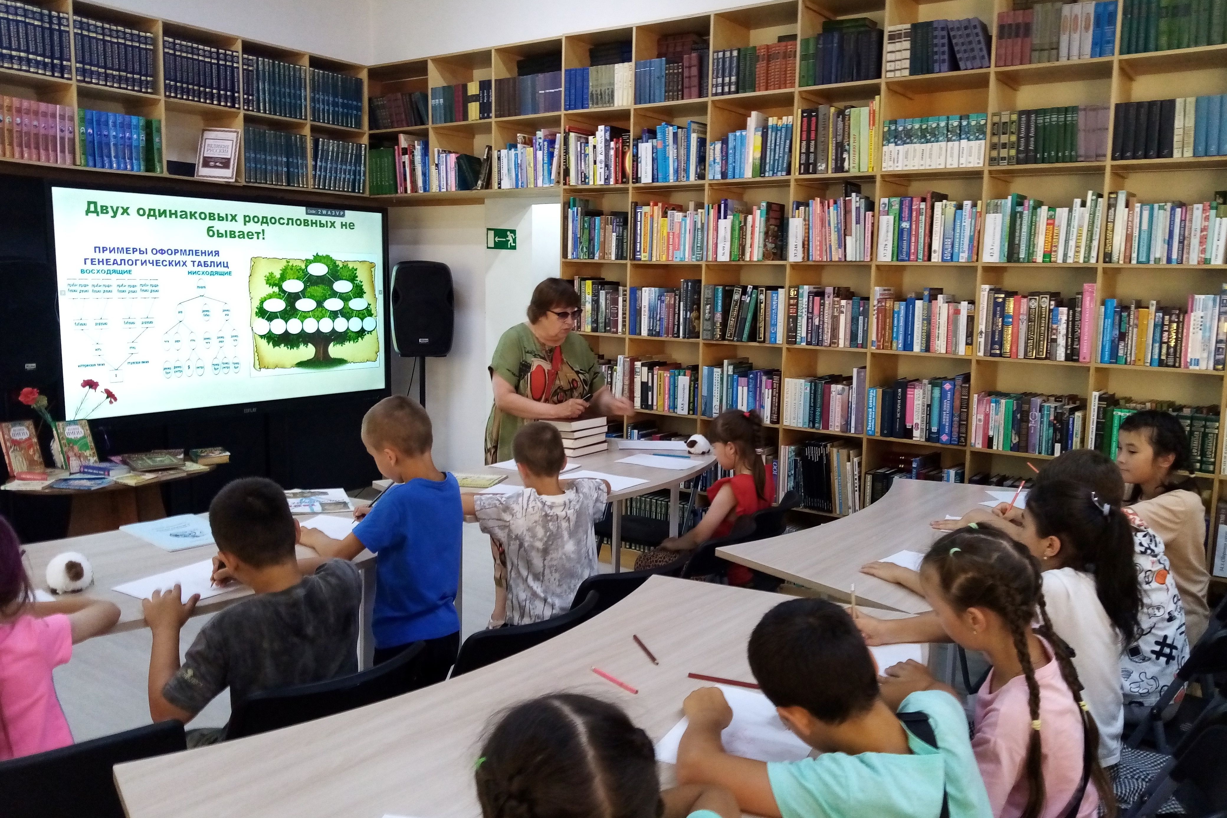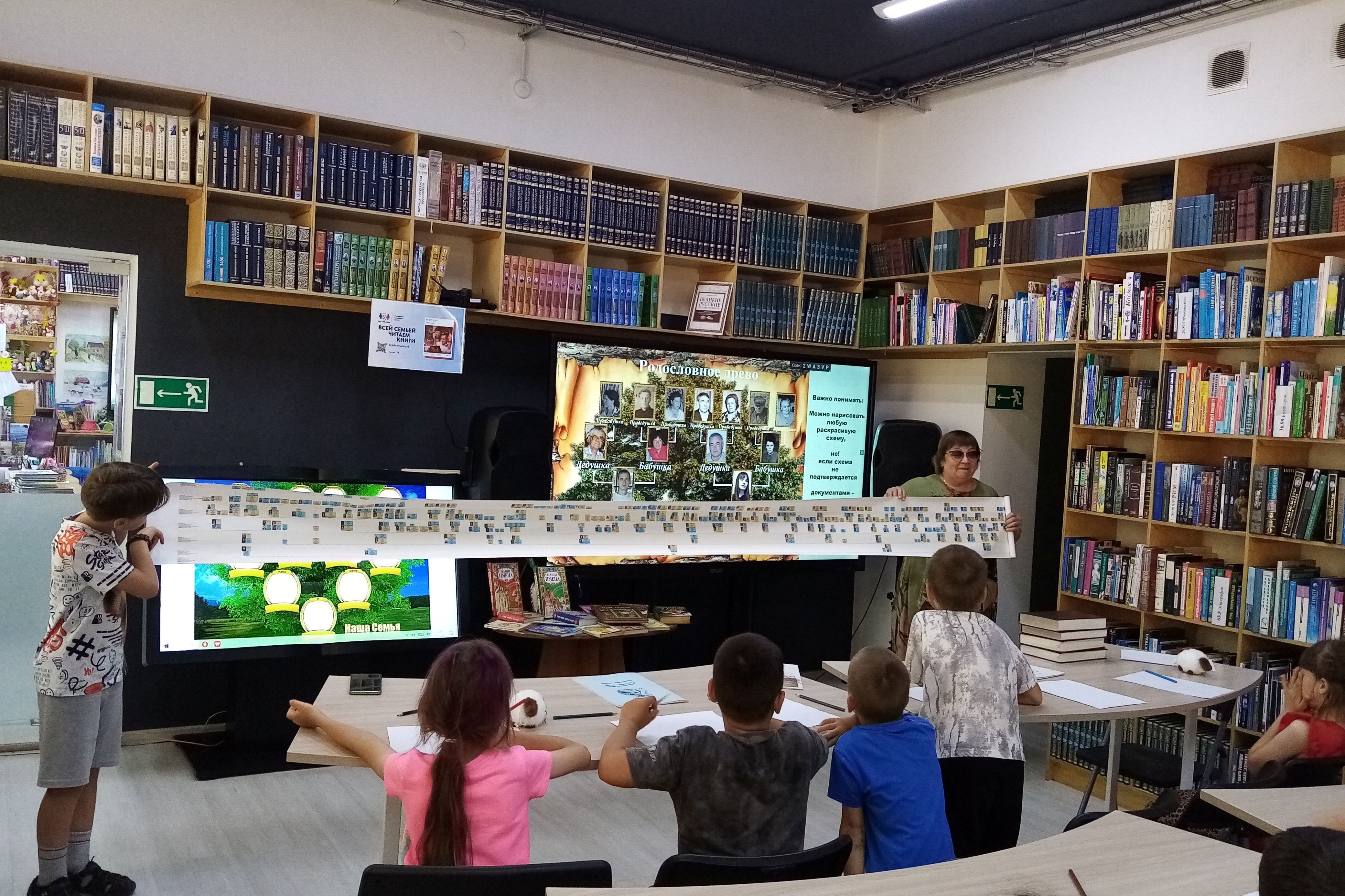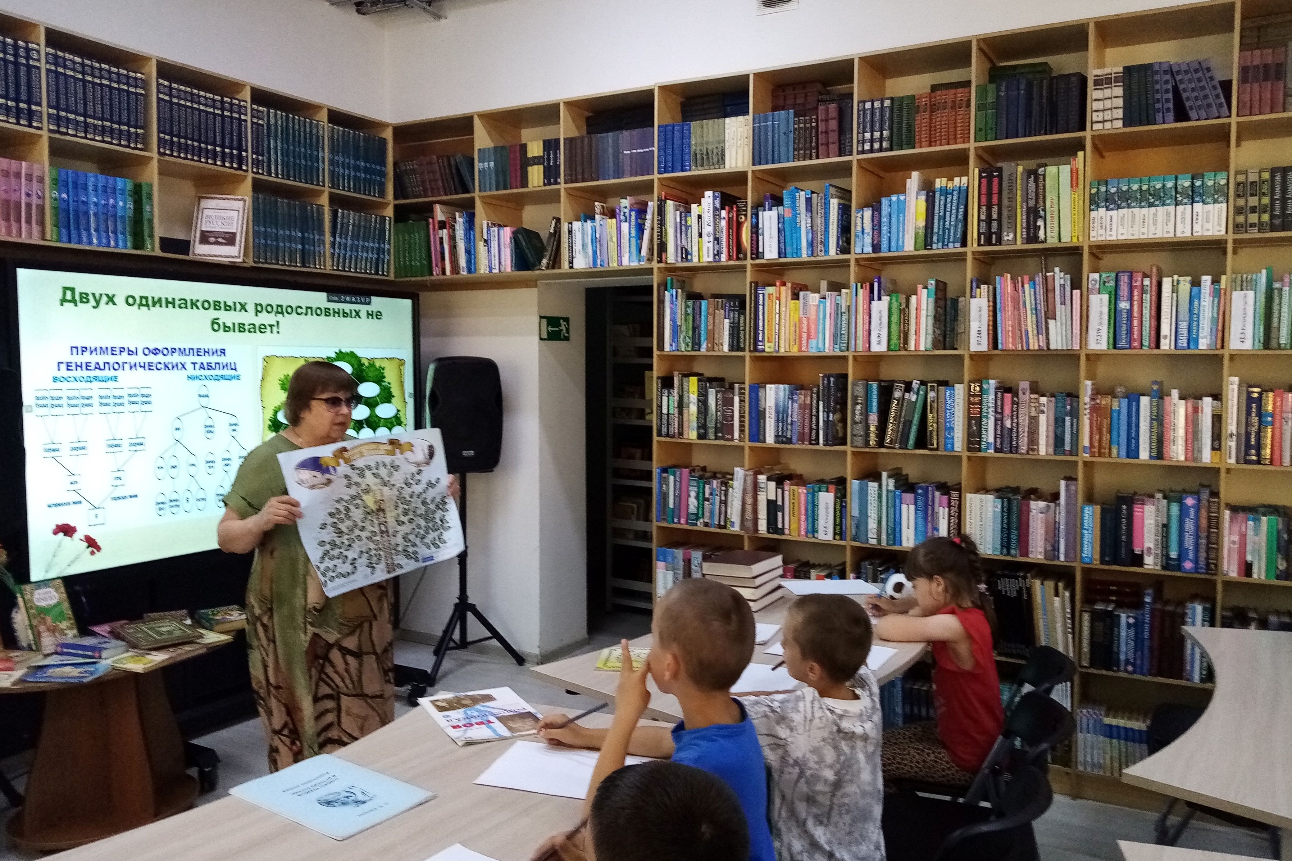 В рамках программы «Азбука родоведения» (по программе Библиотечной системы Владивостока «Наследие») в библиотеке № 12 (ул. Калинина, 281) для ребят из пришкольных лагерей МБОУ «СОШ № 81» и Образовательного центра «Ступени» прошёл познавательный час «Древо жизни и история фамилий». Занятие провела руководитель городского клуба «Родовед» Соболивская Елена Васильевна.