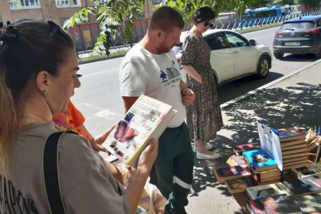 Может быть, для многих из нас эта дата станет поводом заглянуть в книжный магазин или библиотеку. Именно так принято отмечать этот день — посещением литературных мест, библиотек и книжных магазинов. Библиотека вышла навстречу к читателю, и на протяжении нескольких часов жители и гости города могли выбрать и взять себе одну из тех книг, что были в последнее время подарены читателями; что-то из даров читателей библиотека использовала для пополнения книжного фонда библиотеки, а остальное — прежде всего издания в мягких обложках — были подарены радостным читателям, среди которых оказались и путешественники из Сибири и Москвы, и коренные владивостокчане, а также постоянные читатели нашей библиотеки.