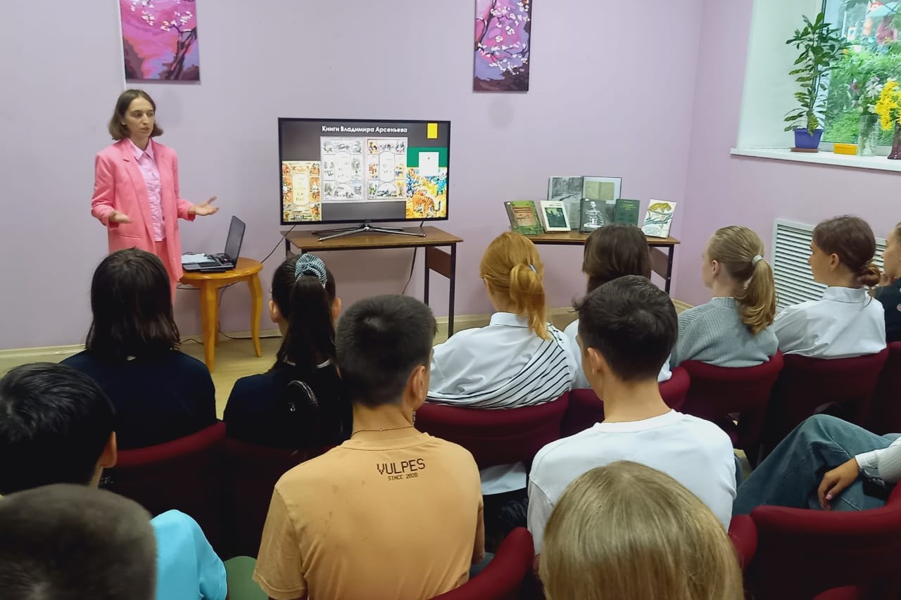 В библиотеке № 13 для учащихся 7 «В» и 7 «А» класса прошло мероприятие, посвященное известному путешественнику, географу, этнографу и исследователю Дальнего Востока Владимиру Клавдиевичу Арсеньеву. Итог экспедиций Владимира Арсеньева – это книги «По Уссурийскому краю», «Дерсу-Узала», «В горах Сихотэ-Алиня», «Сквозь тайгу» и другие, которые стяжали ему славу прекрасного писателя, воспевшего богатую природу и замечательных людей малых народностей Дальнего Востока. Школьников познакомили с творческим наследием В.К. Арсеньева.
