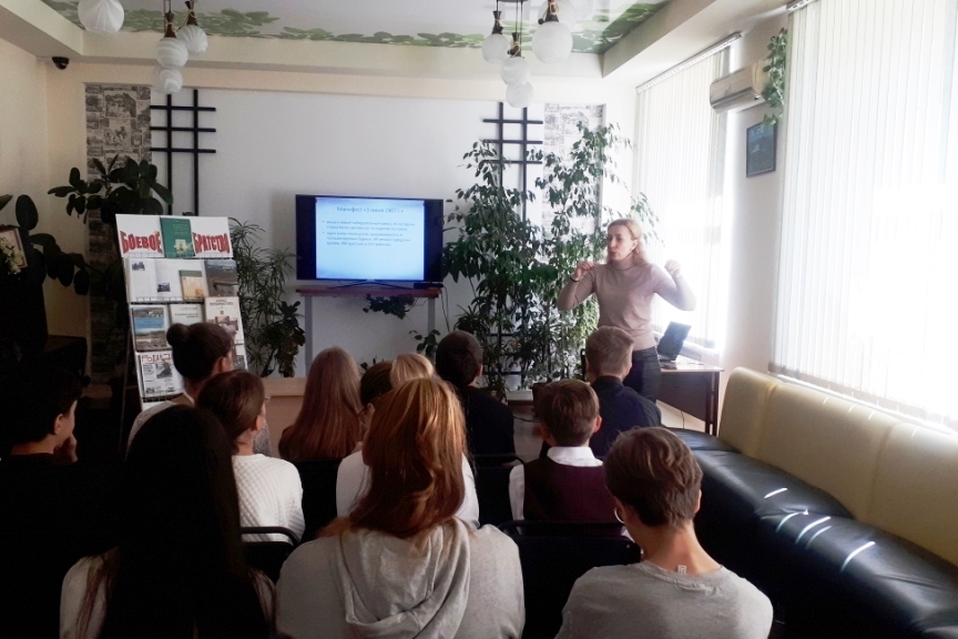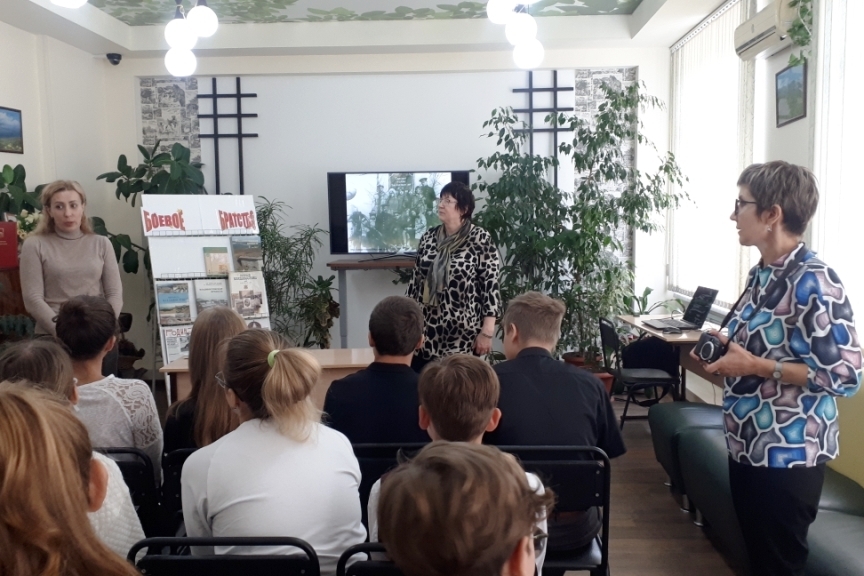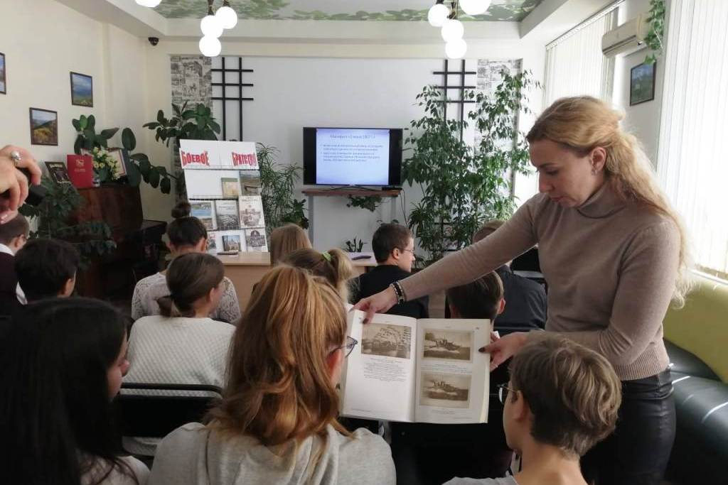 Разобраться в причинах, в ходе основных событий и итогах первой русской революции помогла инфографика «Российская империя в 1905-1907 гг.». Представленная на книжной выставке «Боевое братство» книга Обертаса В. А. «Памятники истории и культуры города Владивостока» помогли разобраться с событиями родного края. Был найден список фамилий расстрелянных героев, а также подробности установки в их честь памятника. Учащиеся вслух зачитали материалы исторической хроники, просмотрели материалы историко-библиографического альбома Турмова Г. П. «Русско-японская война 1904 – 1905 гг. на почтовых открытках. Морские сражения», Авилова Р. С. «Владивостокская крепость: войска, фортификация, события, люди».