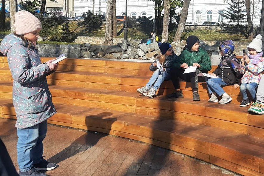 Во время мероприятия детей познакомили с такими понятиями как краеведение и экскурсоведение, рассказали о самых первых улицах города, показали старинные фотографии ближайших к библиотеке памятников архитектуры и истории. Познакомили с уникальными печатными изданиями по истории Владивостока. Творческая составляющая занятия позволила детям самостоятельно найти и изучить интересную историческую справку об улицах, на которых они живут. Во время импровизированной экскурсии, ребята смогли попробовать себя в роли экскурсовода, рассказав друг другу подготовленный материал.