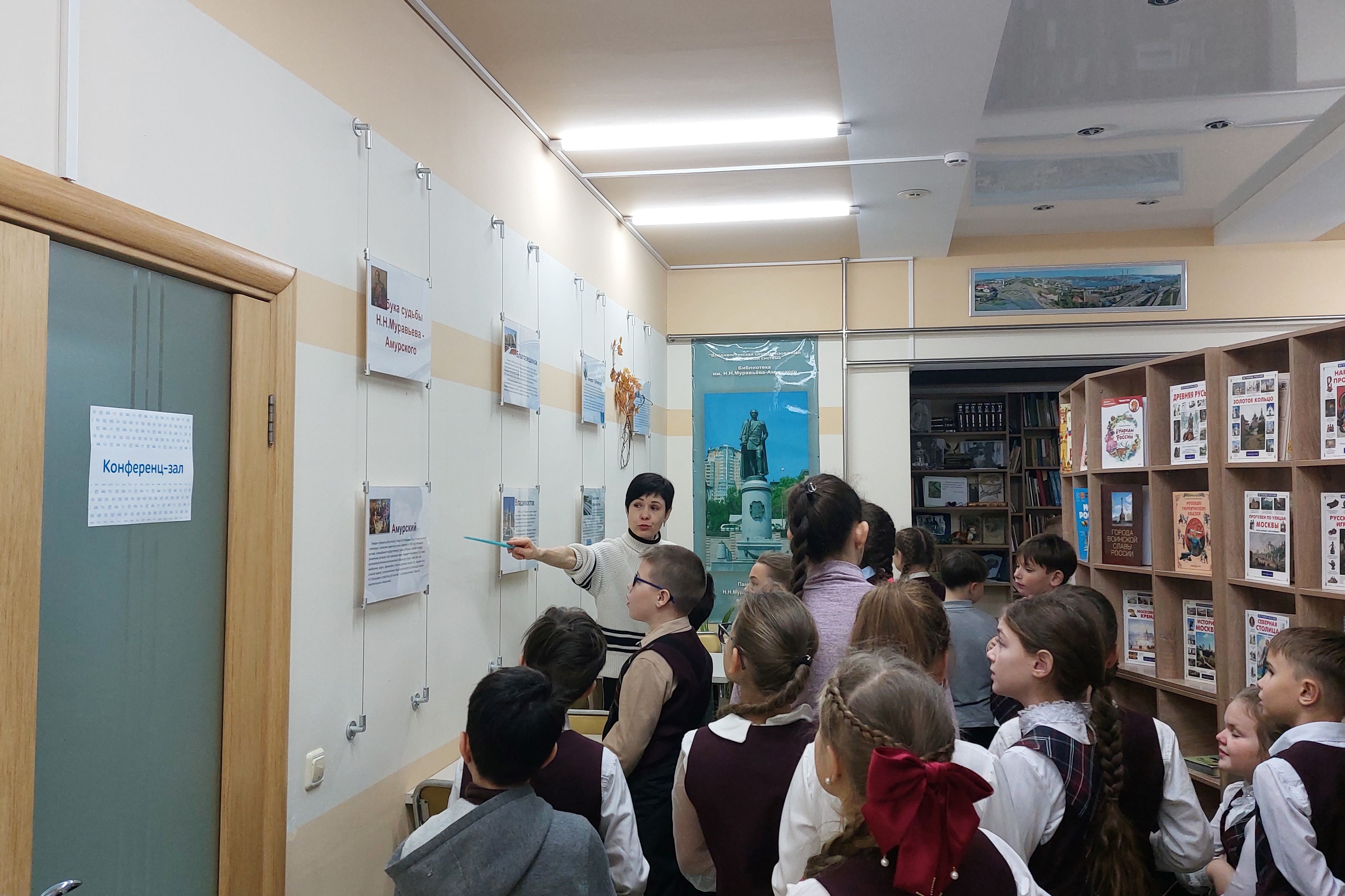 Ребята просмотрели презентацию и познакомились с историей и традициями памятного дня, узнали о других «георгиевских наградах» – сабле, кортике, горне, прослушали рассказ о россиянах, награжденных орденом св. Георгия – Михаиле Кутузове, Александре Суворове, Степане Макарове и Николае Николаевиче Муравьеве-Амурском. В обновленном читальном зале библиотеки появилась тросовая система для размещения информации. Школьники познакомились с экспозицией «Азбука жизни Муравьева-Амурского», посвященной ключевым моментам жизни и деятельности генерал-губернатора, чье имя носит библиотека. Особое внимание было уделено рассказу о героях Советского Союза, чьи имена носят улицы Владивостока, познакомились с граффити «8 героев» в Сквере почетных граждан. Школьники впервые узнали о подвигах Зои Космодемьянской, Николая Вилкова, Степана Борисенко, Ильи Каплунова, Николая Гастелло. Ребята прослушали отрывки из сборника Сергея Алексеева «Рассказы о юных героях», сборника «Герои Великой Отечественной войны», краеведческого издания «Они сражались за Родину» о подвигах приморцев на полях Великой Отечественной войны. памятником Марии Цукановой на территории госпиталя ТОФ, памятником «Героям русско-японской войны 1904-1905 гг.» и др.