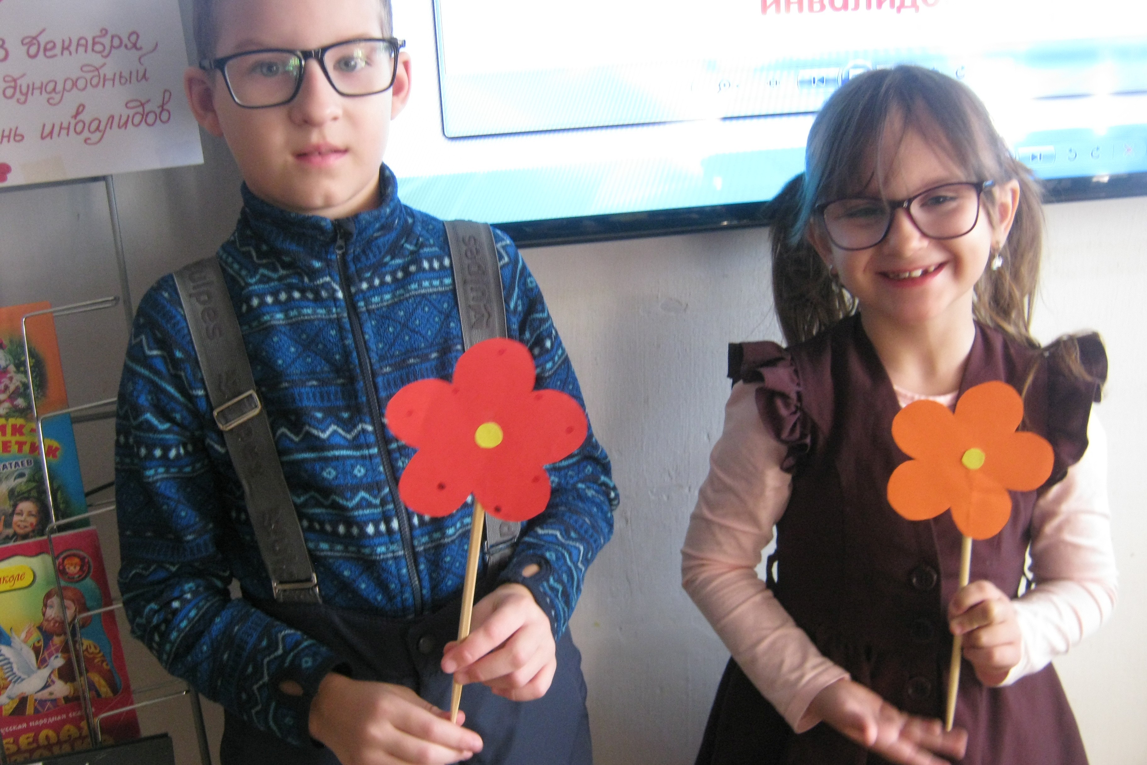 Для юных читателей библиотеки № 3 в творческой мастерской «Маленький затейник» состоялась 1 декабря беседа «Добрым словом друг друга согреем». Библиотекарь начала беседу, о том, что все люди мира нуждаются и в милосердии, и в любви. Но, особенно необходимы тепло и добро, тем, кто, по каким-то причинам, лишен возможности слышать звуки, различать цвета и вообще полноценно воспринимать наш прекрасный мир. Дети сказали, что таких людей называют инвалиды, или люди с ограниченными возможностями. Ребята вместе с библиотекарем прочитали отрывки из рассказа «Цветик-семицветик» Валентина Катаева, и посмотрели эпизоды из одноименного советского мультфильма, который был снят по мотивам этого произведения. Дети отметили, что это очень добрая и мудрая история, которая учат нас быть отзывчивыми к чужой беде, не проходить мимо и протягивать руку помощи тем, кто в этом нуждается. В завершении встречи, юные читатели вместе с родителями сделали свой чудо цветок с семью разноцветными лепестками, и придумали добрые желания, которые они смогут исполнить.