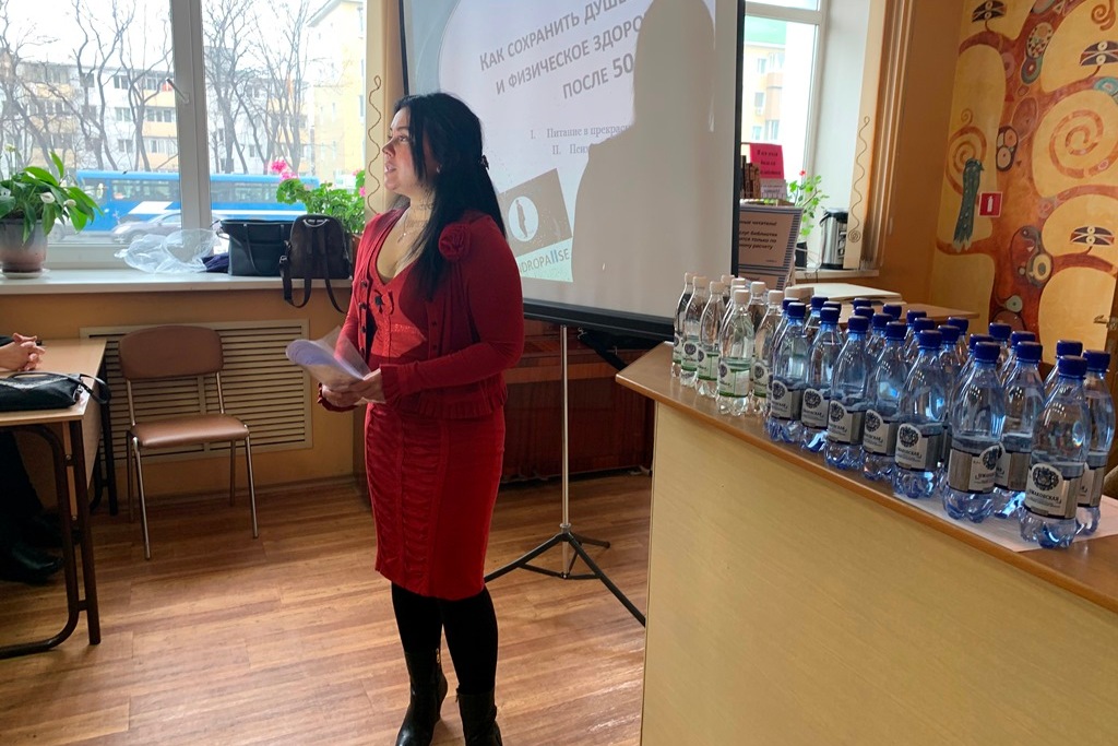 11 февраля, в Центральной библиотеке им. Чехова (проспект 100-летия Владивостока, 48) прошла первая лекция из серии ежемесячных встреч по диетологии и психологии лишнего веса. На первой встрече поговорили о важной теме: «Как сохранить здоровье тела и души после 50 лет?».