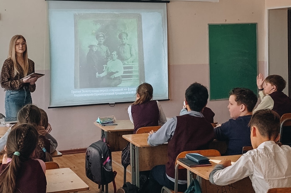 В 1914 году началась Первая мировая война. С первых дней войны на фронт отправился Уссурийский казачий полк. Казаки-уссурийцы героически проявляли себя в годы войны, но мало имен героев сохранила история. Из архивных писем школьники узнали о некоторых из них. А из книги «О казаках-уссурийцах в связи с краткой историей Уссурийского казачьего войска» А. Жернакова учащиеся услышали о подвиге Ивана Пичуева, подвергшегося страшным истязаниям в плену.