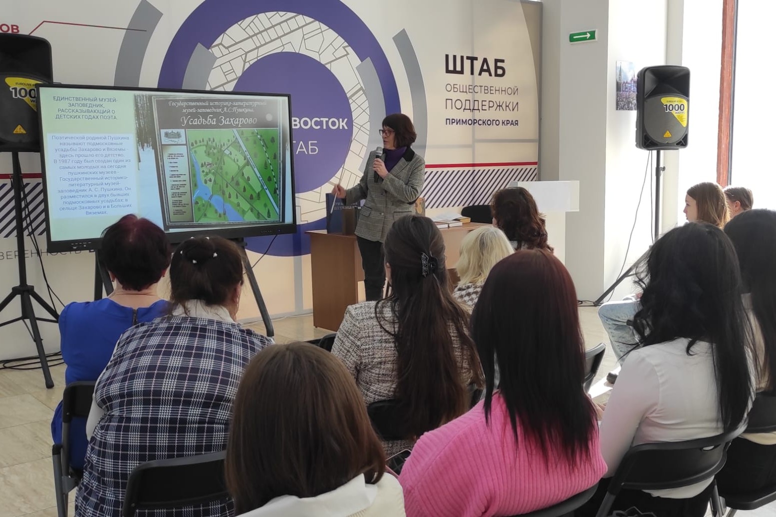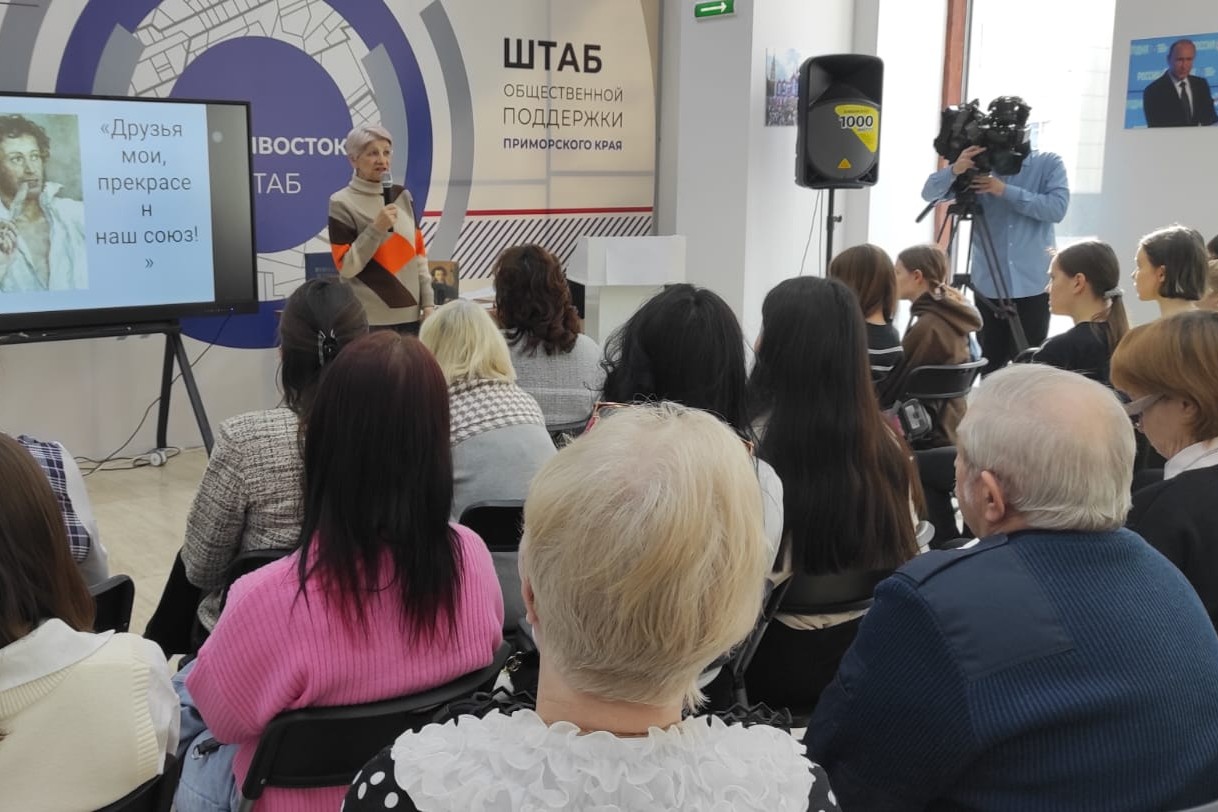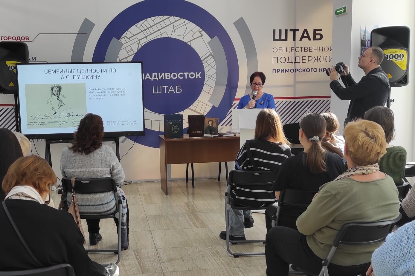 10 февраля – День памяти Александра Сергеевича Пушкина. Поэт погиб в 37 лет, но оставил нам богатое литературное наследство: стихи, повести, романы и сказки. Команда специалистов библиотек МБУК «Владивостокская централизованная библиотечная система» организовала для жителей и гостей города Владивостока литературную гостиную. Мероприятие проведено в Штабе общественной поддержки Приморского края (ул. Светланская, 43).