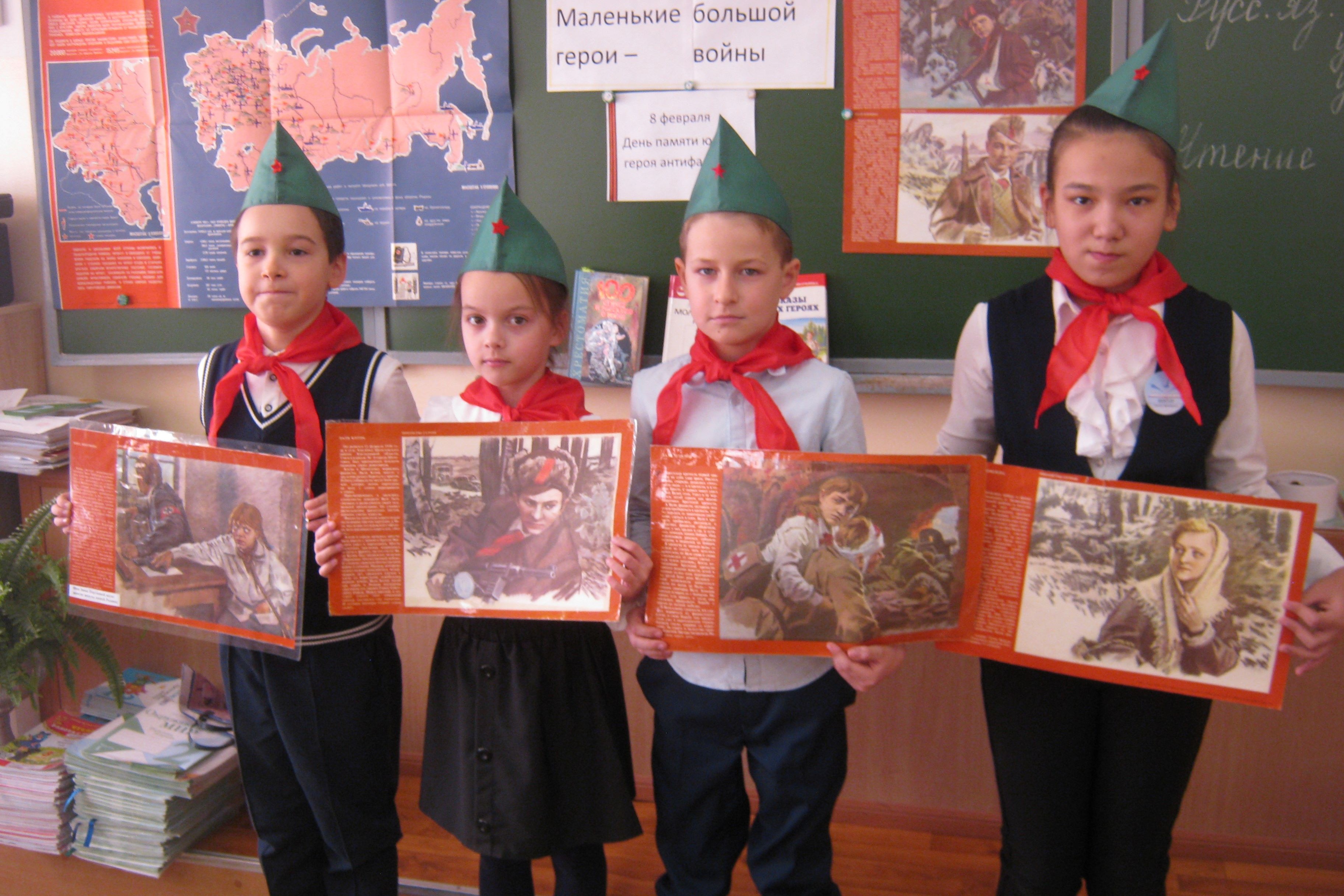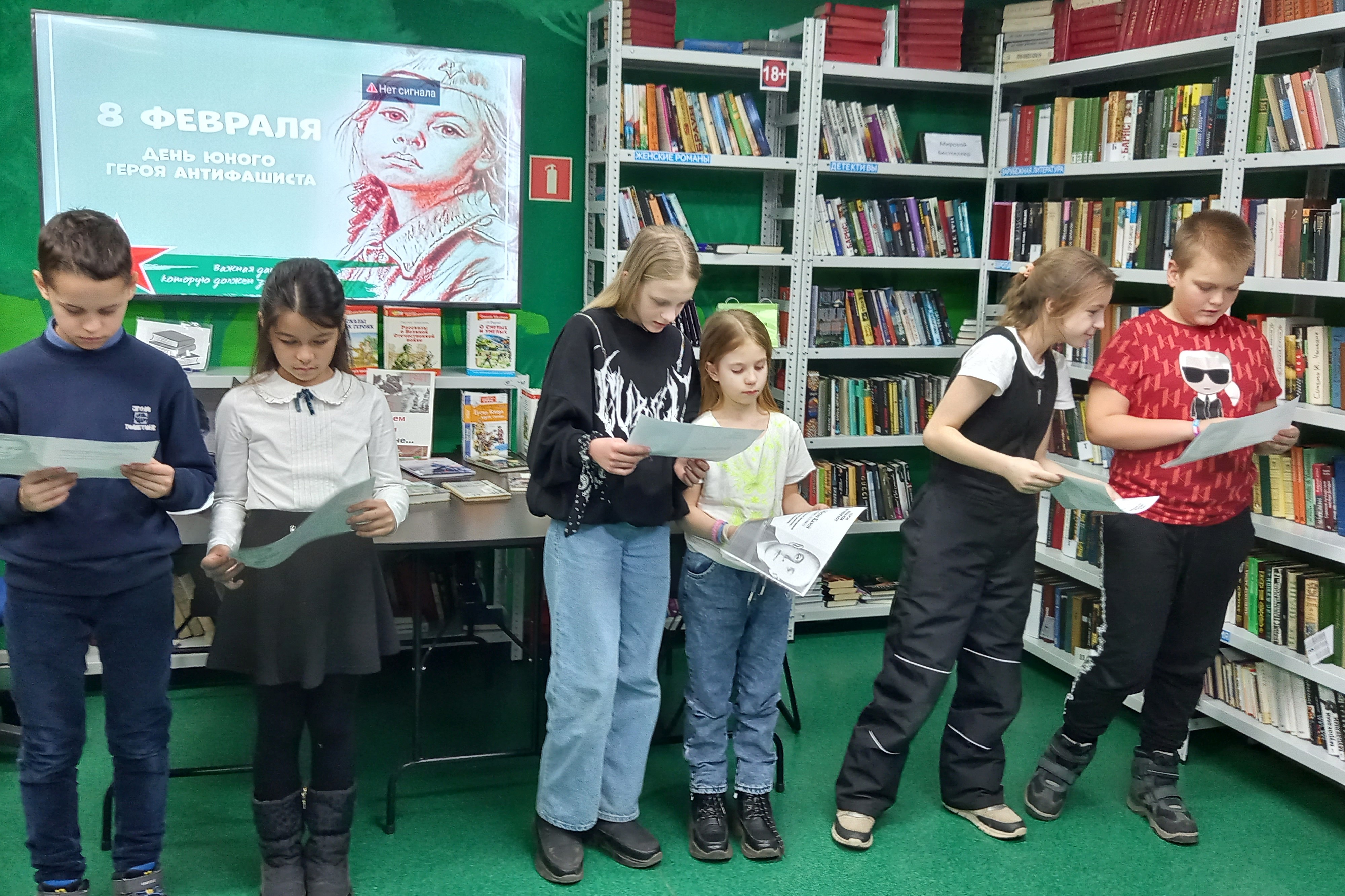 8 февраля урок мужества «Маленькие герои – большой войны» организован для учащихся 3 «В» класса ЦО «Вектор» провели сотрудники библиотеки № 15. В 1962 г. – участники антифашисткой демонстрации, французский школьник Даниэль Фери и иранский мальчик Фадыло Джамале – в 1963 г.с разницей в 1 год погибли 8 февраля. Во время Великой Отечественной войны 1941 – 1945 г., в Краснодоне, 8 февраля 1943 г. были расстреляны участники подпольной организации «Молодая гвардия».
