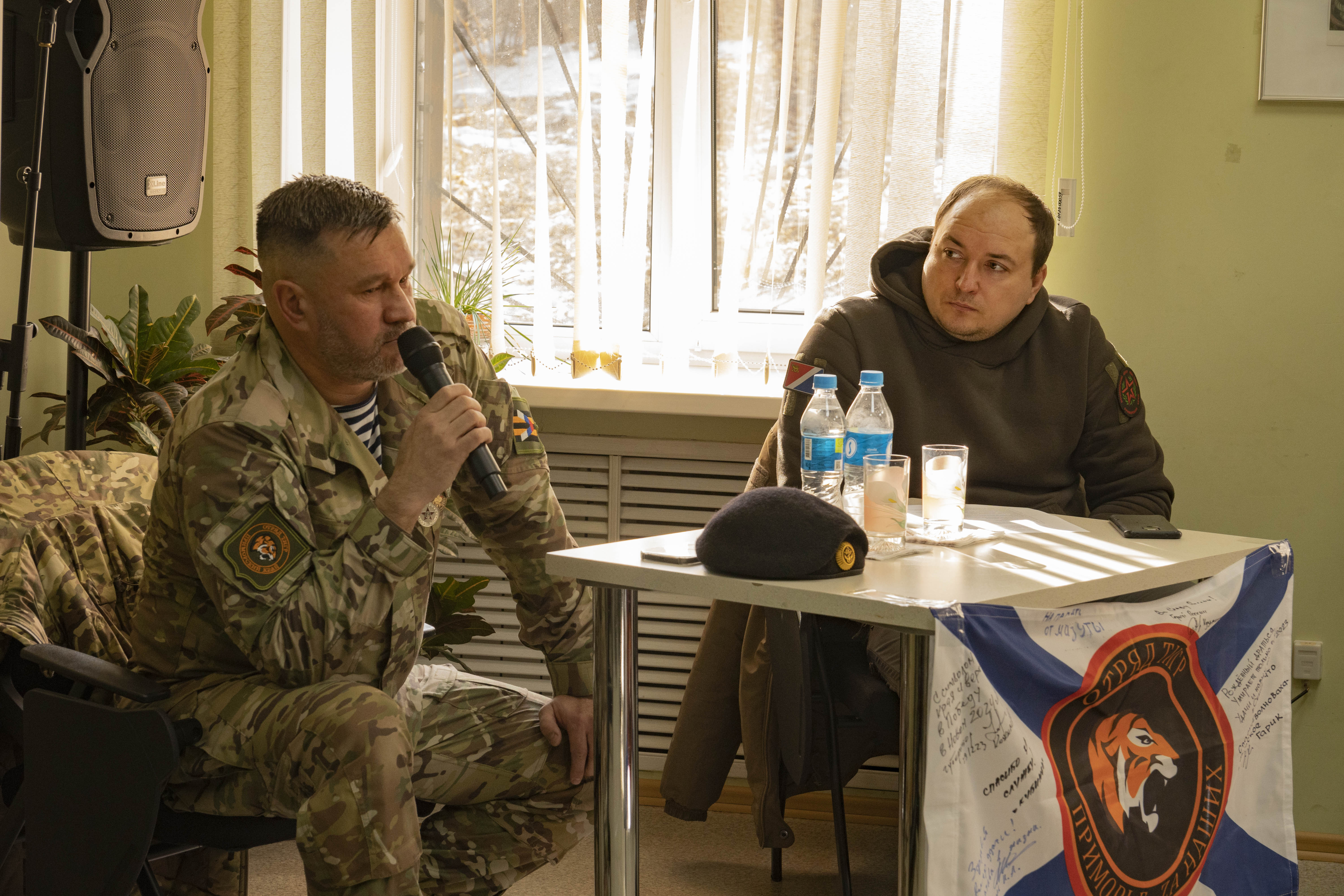 10 февраля в библиотеке № 6 им. Н.Н. Муравьева-Амурского при поддержке управления культуры и ВЦ МОО «ФВТИ» состоялась встреча с участником специальной военной операции Евгением Паутовым позывной «Юджин». Евгений является добровольцем приморского добровольческого отряда «Тигр» (БАРС-22). Основная должность в отряде: разведчик — пулеметчик.
