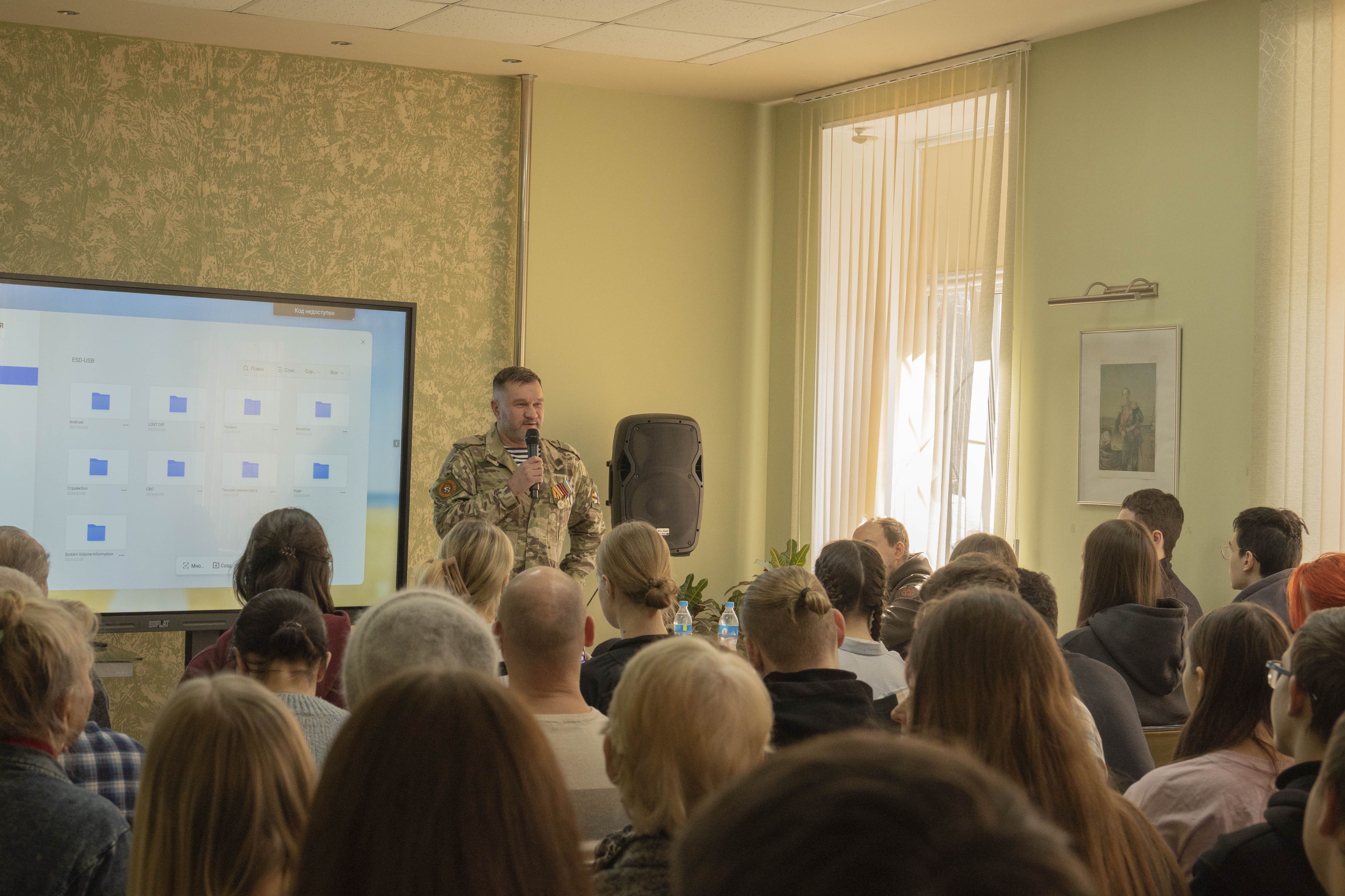 10 февраля в библиотеке № 6 им. Н.Н. Муравьева-Амурского при поддержке управления культуры и ВЦ МОО «ФВТИ» состоялась встреча с участником специальной военной операции Евгением Паутовым позывной «Юджин». Евгений является добровольцем приморского добровольческого отряда «Тигр» (БАРС-22). Основная должность в отряде: разведчик — пулеметчик.