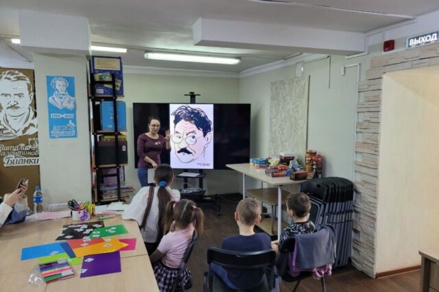 Во время мероприятия дети узнали, что Юрий Узбяков, как и художница Наталия Басманова, работал с акварельными красками. Но, в отличие от Басмановой, чьи иллюстрации отличались узнаваемой нежностью и воздушностью, Узбяков избрал для себя более сложный путь — путь художника-карикатуриста. Карикатура — это сатира, а сатира, как точно подметил Владимир Маяковский, не зеркало, а увеличивающее стекло.