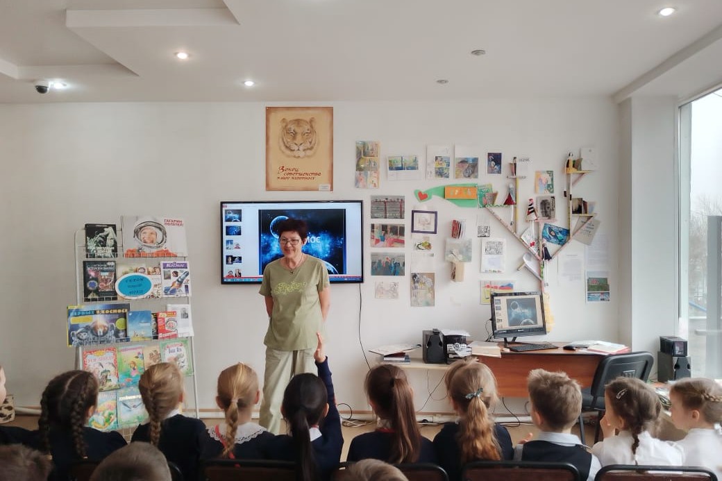 Библиотека №3 организовала для учащихся 3 «В» класса МБОУ СОШ №18 слушатели краеведческой программы «Я – приморец!», разбирались, как связан наш край с космическими программами России. На карте Владивостока нашли целый «Городок космонавтов» в районе бухты Тихой, улицы этого микрорайона названы в честь космонавтов. Беседуя о космосе, узнали, что во Владивостоке базируются корабли измерительного комплекса «Маршал Крылов», который отслеживают из океана полеты космических объектов. Уссурийская астрофизическая обсерватория, народное название станция Солнца, также работает на космонавтику. Космонавты родом из Приморья — Григорий Нелюбов, Елена Серова. Приморский поселок возле озера Хасан — площадка для аварийной посадки «Буранов», многоразовых космических кораблей. Воинская часть близ села Галёнки, в 40 км от г. Уссурийска, поддерживает связь с МКС и орбитальными спутниками различного назначения, в свое время она сопровождала полет Юрия Гагарина.