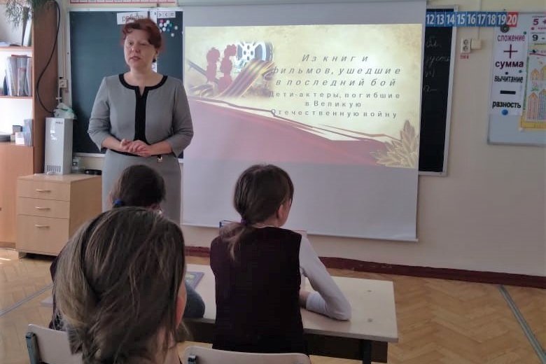 Библиотека №16 провела час памяти для учащихся ООШ №1. Ученики почтили память детей-актеров, ушедших на фронт и оставшихся на полях сражений. Возможно, в будущем у них могла быть успешная кинокарьера, но им довелось сыграть одну – две роли. Юные актеры ушли на фронт и погибли, сражаясь с врагом. Юные герои оказались незаслуженно забытыми, а ведь они не только оставили в истории кинематографа свой след, но и сделали все для того, чтобы приблизить победу над фашизмом.