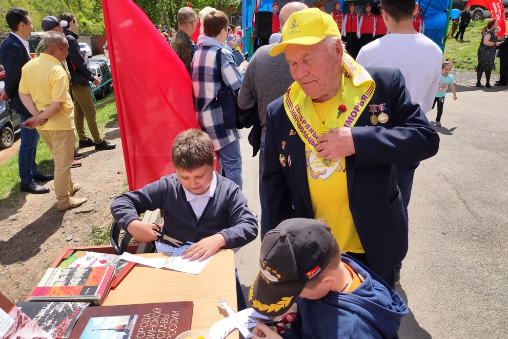 Дети с удовольствием приняли участие в мастер – классе «Белый журавль», приуроченном к 100-летию со дня рождения Расула Гамзатова, ведь в концертной программе прозвучала знаменитая песня «Журавли», написанная на его стихи композитором Яном Френкелем. Взрослые рассказывали, что принимают участие в Акции «Бессмертный полк», потому что практически в каждой семье были и есть участники Великой Отечественной войны, труженики тыла, дети войны, их воспоминания, фотографии.