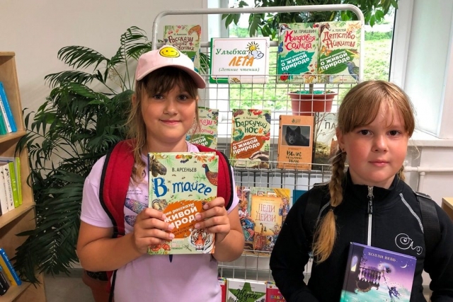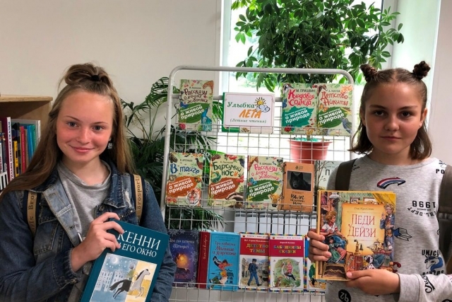 У книжной выставки «Улыбка лета» даются рекомендации по интересующей теме, проводятся беседы и мини-викторины по прочитанным книгам, самые читающие получают небольшие призы.