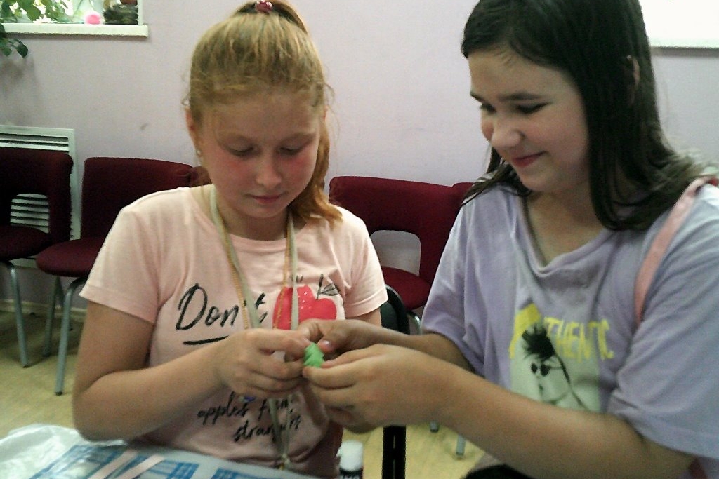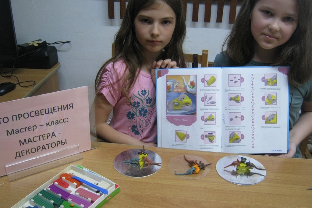 Каникулы продолжаются, и творческие мастерские в библиотеках регулярно посещаются детьми. Одно из последних занятий прошло в библиотеке №15. Здесь каждую неделю по средам и пятницам юные мастерицы с удовольствием постигают новые этапы творческих изысканий. На этот раз девочки выбрали несколько вариантов изготовления бумажных рыбок. Все форматы отличались не только различными техниками, но и объёмом, декорированием с использованием разных бумажных материалов. Получилось красиво и интересно. Лепка из пластилина, это тоже одно из направлений творить руками, девочкам понравился и материал для поделок – пластилин, его податливость и возможность быстро переделать фигурку в случае неудачи.