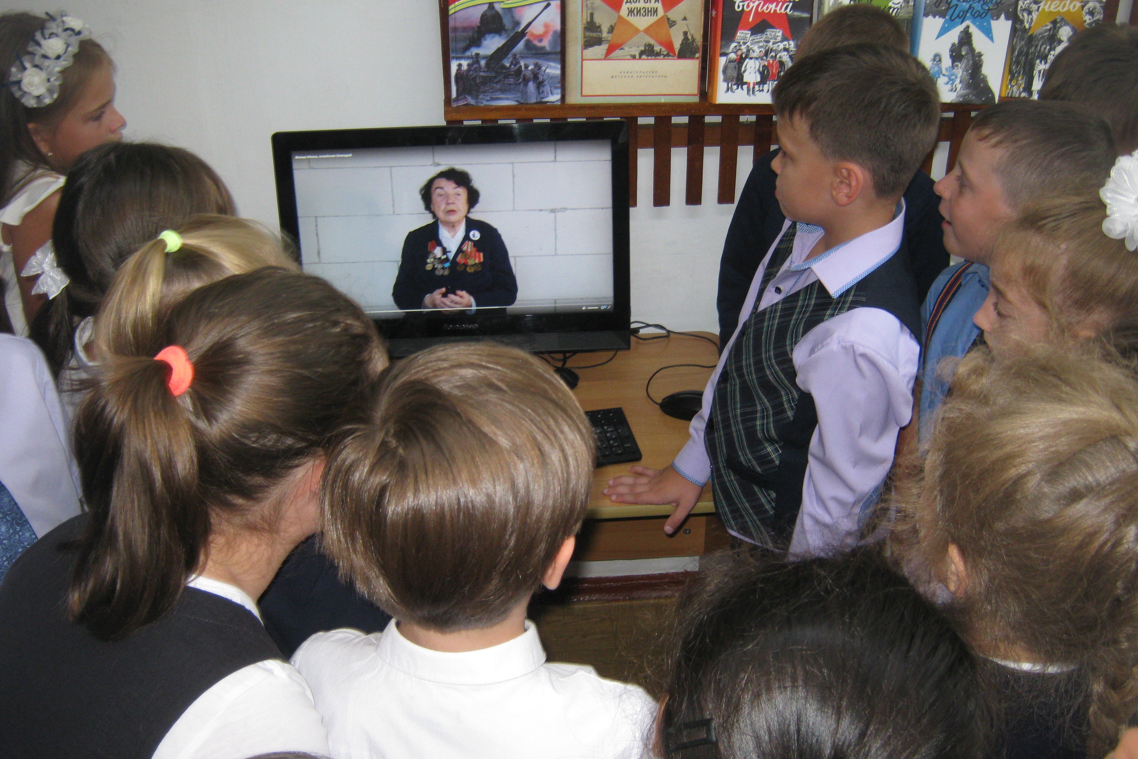 Очень тихо стало в библиотеке, когда с экраны прозвучали первые фразы из личных воспоминаний Людмилы Васильевны Кисель-Загорской о блокаде Ленинграда 8 сентября 1941г. Короткометражный фильм «Жизнь, опаленная блокадой» второклассники смотрели, затаив дыхание, сначала сидя, а потом встали, подойдя в плотную к экрану. Ловили каждое слово Людмилы Васильевной и искренне сочувствовали, что ее детство было таким трудным и сиротским.