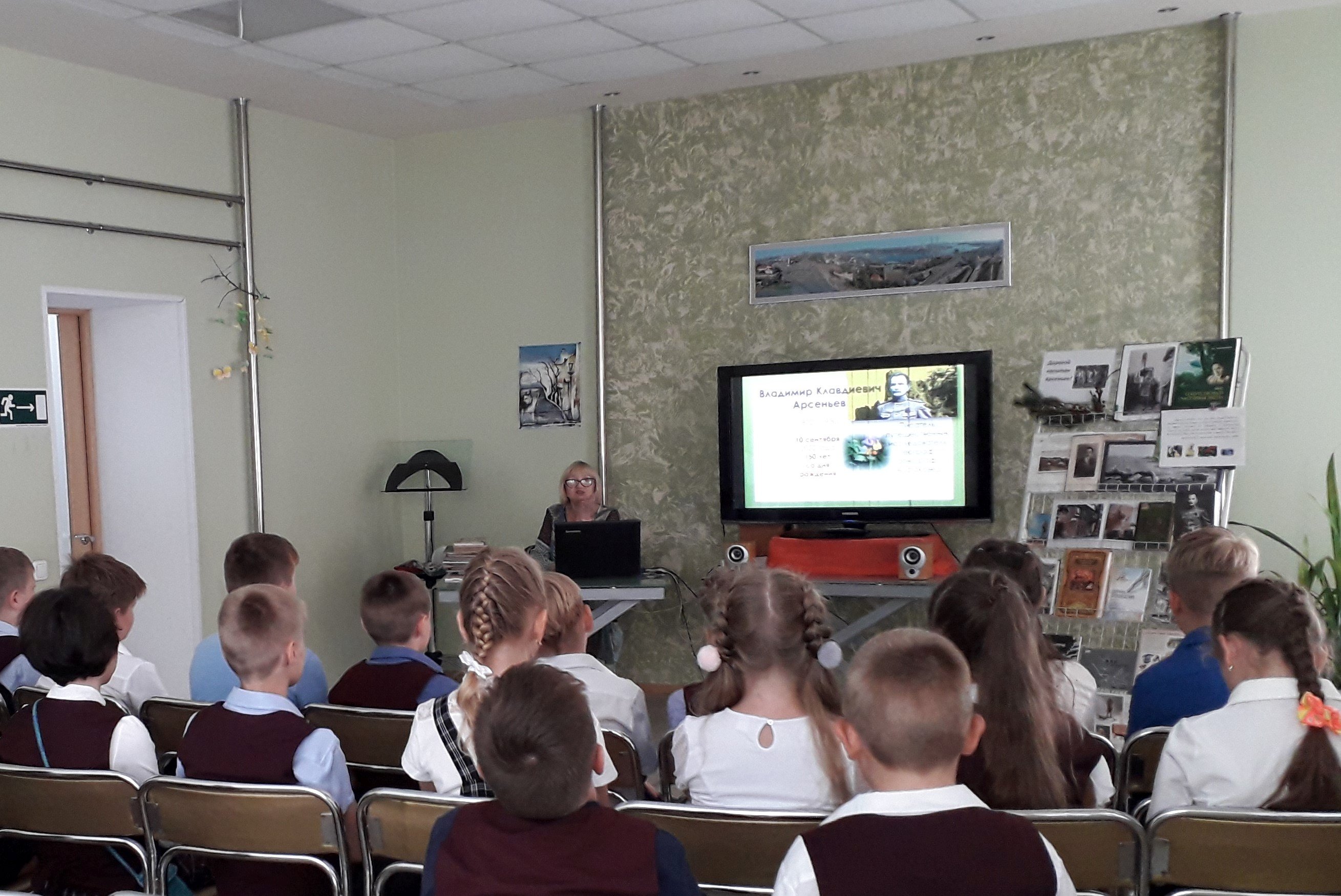 В библиотеке № 13 учащиеся начальной школы № 61 послушали увлекательную беседу про изучение Владимиром Арсеньевым географии, этнографии и природных ресурсов Дальнего Востока. За 30 лет исследований ученый собрал ценные сведения о дальневосточных народах и природе региона. Но его книги «Путешествие по Уссурийскому краю», «Дерсу Узала», «В горах Сихотэ-Алиня» читаются и как интереснейшие приключенческие романы. Именно через книги Арсеньева жители Центральной России узнали о Приморье. Крае суровом, прекрасном и романтическом. Также ребята узнали, что одним из достижений Арсеньева является образ гольда Дерсу Узала, служившем проводником в отряде исследователя и обладавшего высочайшим экологическим сознанием.
