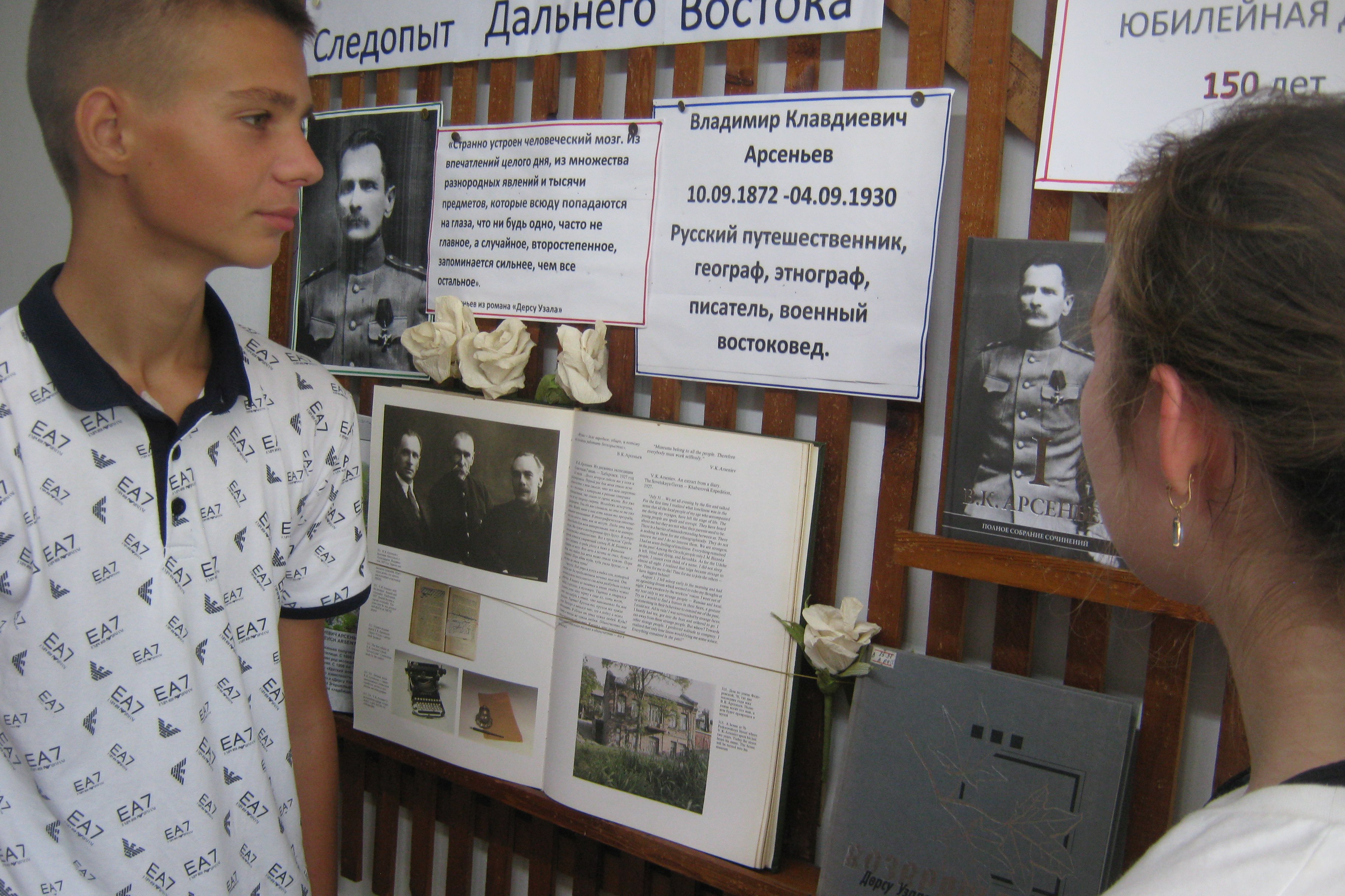 Об исследованиях, творческой судьбе выдающегося соотечественника вспоминали 9 сентября девятиклассники школы №65 в библиотеке №15. Уже после беседы ребята высказывали свои пожелания, вот так же пройти тропами Арсеньевских маршрутов, побывать на сопках Сихоте-Алиня, сплавиться по таежным рекам, и может даже встретить тигра, или хотя бы тигренка.