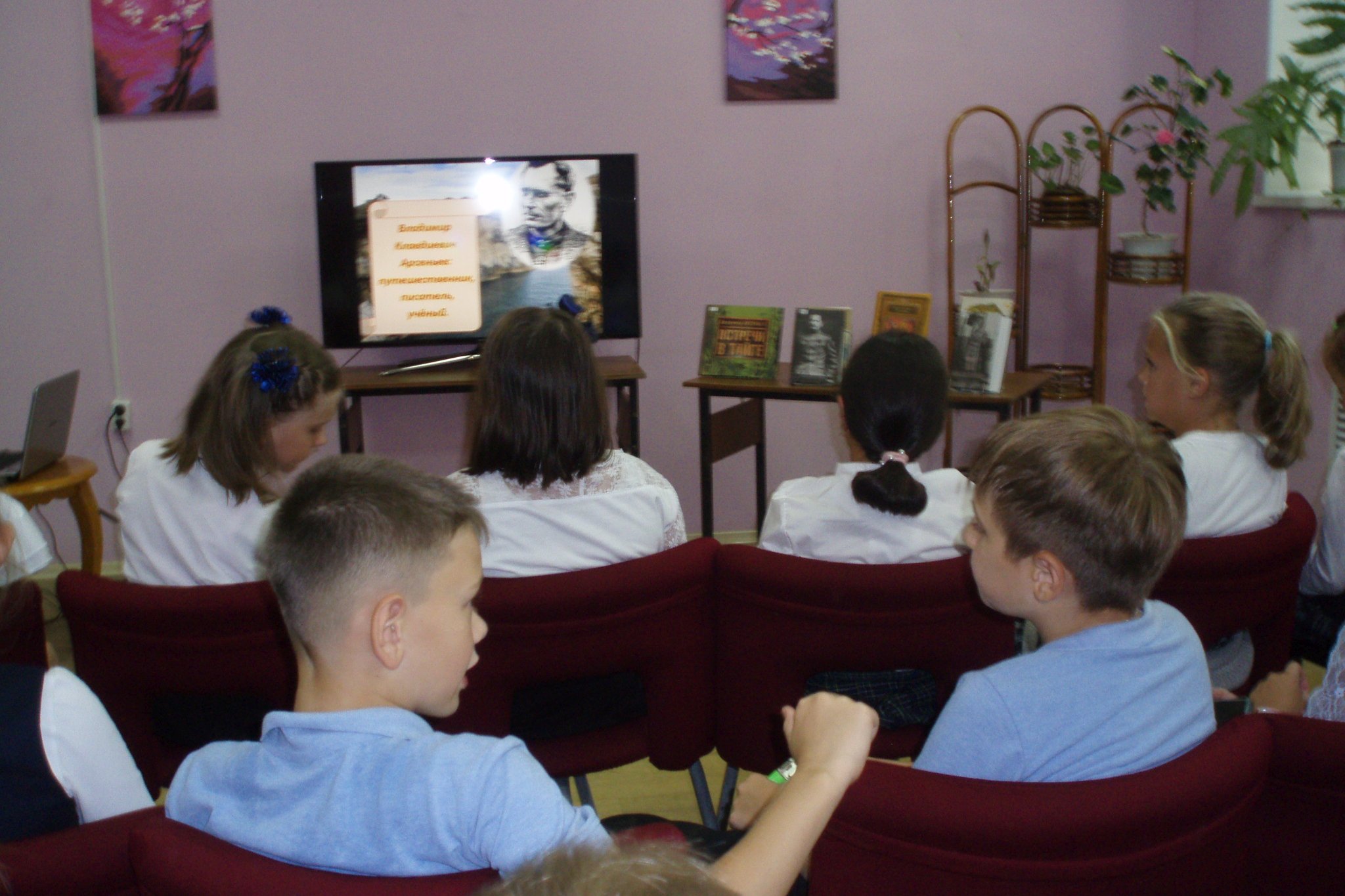 В библиотеке № 13 учащиеся начальной школы № 61 послушали увлекательную беседу про изучение Владимиром Арсеньевым географии, этнографии и природных ресурсов Дальнего Востока. За 30 лет исследований ученый собрал ценные сведения о дальневосточных народах и природе региона. Но его книги «Путешествие по Уссурийскому краю», «Дерсу Узала», «В горах Сихотэ-Алиня» читаются и как интереснейшие приключенческие романы. Именно через книги Арсеньева жители Центральной России узнали о Приморье. Крае суровом, прекрасном и романтическом. Также ребята узнали, что одним из достижений Арсеньева является образ гольда Дерсу Узала, служившем проводником в отряде исследователя и обладавшего высочайшим экологическим сознанием.