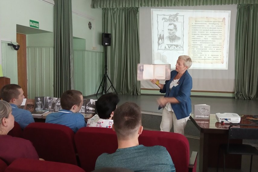 По приглашению командования ФГКУ «1477 Военно-морской клинический госпиталь Министерства обороны РФ» для военнослужащих, находящихся на лечении и медицинского персонала, библиотека № 20 организовала виртуальное путешествие «Вслед за В.К. Арсеньевым. В поисках страны Удэхе». Слушатели с большим интересом посмотрели красочную презентацию о жизненном пути выдающего писателя и путешественника, полистали страницы книг Владимира Арсеньева. Также вспоминали о съемках фильма «Дерсу Узала», оскароносный советско-японский художественный фильм Акиры Куросавы, созданный в 1975 году по мотивам произведений Арсеньева. Первый фильм режиссёра не на японском языке и в то же время единственный, снятый им на широкоформатной киноплёнке 70-мм. В заключении встречи слушатели также посмотрели презентацию переизданной книги «Встречи в тайге». Это издание с дополненной реальностью всегда вызывает самый искрений интерес и восторг у людей разных возрастов. Благодаря приложению на страницах книги оживают звери и птицы, можно услышать аудио-фрагменты книги. Участники виртуального путешествия отметили важность и нужность изучения трудов Владимира Клавдиевича Арсеньева, особенно для детей и молодежи.